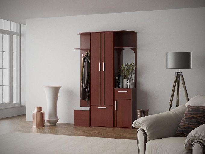 Красивая прихожая Луч-1 придется по душе покупателям. Здесь есть шкаф для Вашей одежды, который находится посередине. Слева – отделение для верхней одежды с полочкой для головных уборов и нижним ящиком для обуви. Справа находится зеркало средних размеров и отделения для личных вещей, одежды, обуви. Купить Луч-1 можно в нашем интернет-магазине по демократичной цене, предварительно выбрав размеры и цвета изделия.