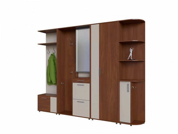 Расширенная версия исходной модели – Марго-3 подойдет под любой интерьер Вашей комнаты. Прихожая имеет множество разных отделов для обеспечения Вашего удобства, а именно: вешалку для верхней одежды, зеркало, шкаф, 4 ящика, 4 полочки. Там Вы можете разместить собственные вещи, разные принадлежности, украшения, обувь, одежду, предметы декора и другое. Заказать модель можно в нашем интернет-магазине, предварительно выбрав цвет и параметры изделия.