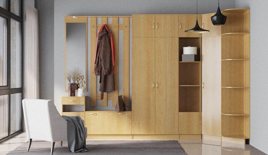 Очень большая и просторная модель придется Вам по вкусу. Если у Вас большая прихожая, эта модель будет просто незаменима и решит все проблемы с размещением множества вещей. Прихожая Машенька-4 имеет большой шкаф для одежды с тремя (одной двойной) антресолями сверху. Кроме этого есть большая открытая вешалка, тумба для обуви, тумбочка с полками и выдвижными ящичками для разных мелочей. Украшает модель большое зеркало и угловой элемент с полками. Купить такую мебель Вы можете в другом цвете.