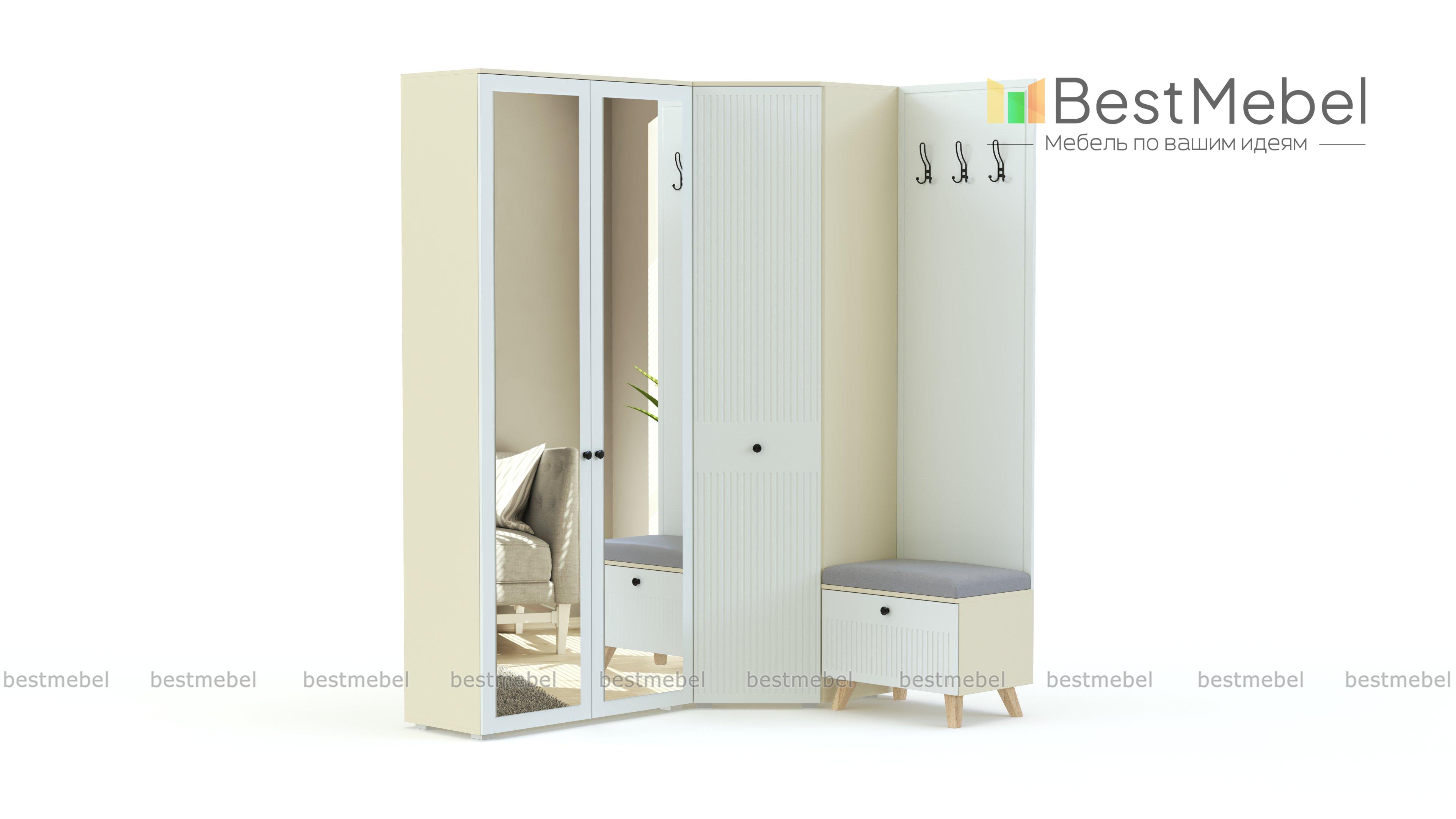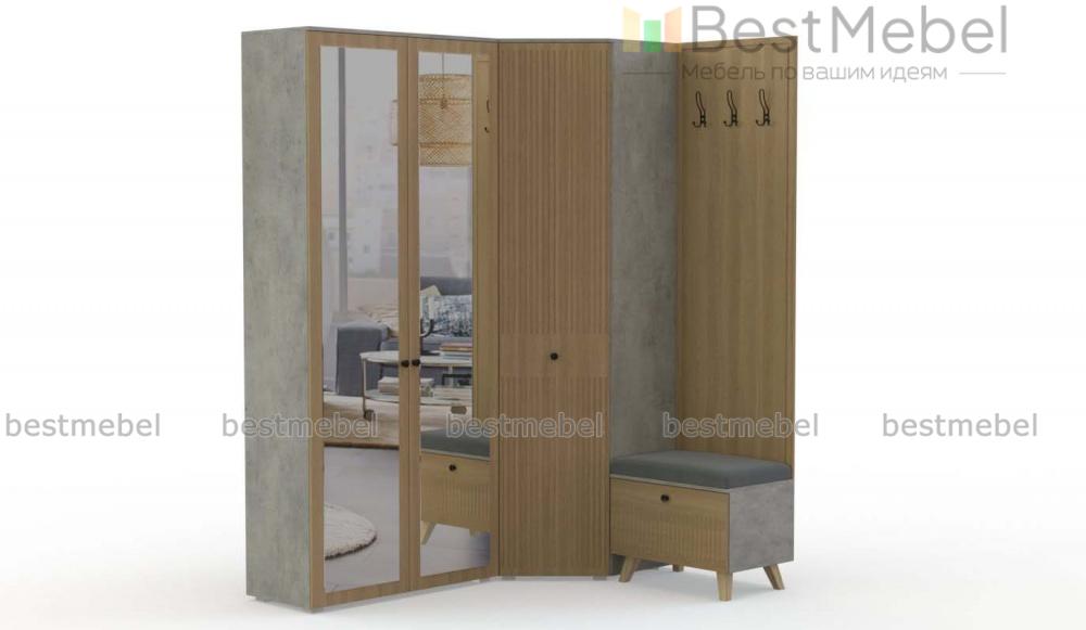 Прихожая Мио 15 BMS поможет стильно оформить входную зону и сберечь квадратные метры. Для удобного размещения повседневной одежды, обуви и аксессуаров в модульной композиции объединены угловой шкаф, двухдверный прямой и модуль с обувницей и открытой вешалкой. Трендовые оттенки с имитацией бетона и матовой фактуры эффектно сочетаются с вертикальной фрезеровкой, а зеркала визуально расширяют пространство. Купить прихожую Мио 15 BMS приглашаем в наш интернет-магазин с выбором цвета и размеров.