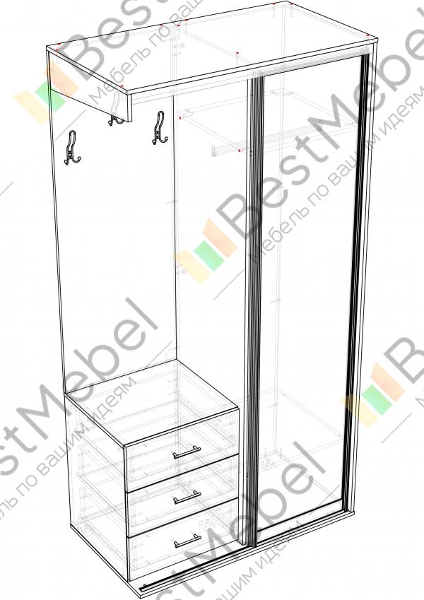 Прихожая Моно-лиза BMS представляет компактный шкаф-купе с одной раздвижной дверью. В закрытом отделе находится штанга, предназначенная для размещения на ней вешалок с одеждой. Вторая половина шкафа оборудована под вешалку с крючками и вместительную тумбу с тремя ящиками. Дверца модели может быть выполнена с пескоструйным рисунком. Купить прихожую Моно-лиза BMS можете на сайте нашего магазина и по низкой цене.