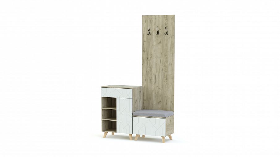 Прихожая Мио 10.1 BMS гармонично вписывается в помещения любой планировки благодаря модульной конструкции. Распашная тумба, дополненная выдвижным ящиком для мелочей и полками, открытая вешалка и обувница с мягкой обивкой сиденья разместят в удобном доступе повседневную одежду, обувь и аксессуары. Визуально легкие благодаря высоким скошенным ножкам, модули выполнены в древесных тонах и украшены 3D фрезеровкой. Купить прихожую Мио 10.1 BMS приглашаем в наш интернет-магазин с выбором фурнитуры и цвета по каталогу.