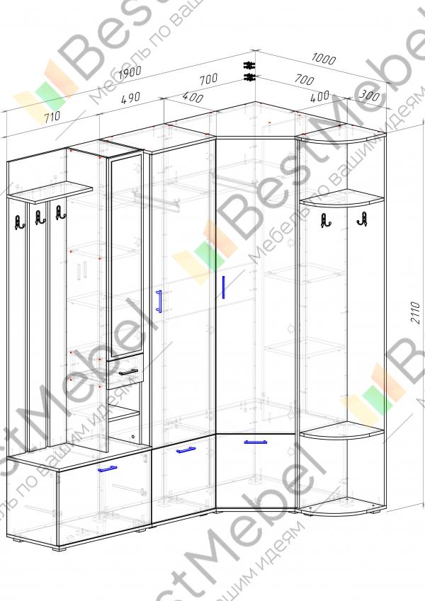 Прихожая угловая Ника BMS поможет эффективно задействовать угловое пространство и оборудовать комфортную и эстетичную входную зону. Многофункциональная композиция включает в себя шкафную группу с полками и штангой, обувницу, открытую вешалку, зеркальный шкафчик с нишами и выдвижным ящиком и торцевую секцию с крючками. Лаконичный дизайн и контрастная расцветка в древесных тонах помогут гармонично вписать комплект в классические и современные интерьеры. Купить прихожую угловую Ника BMS приглашаем недорого в наш интернет-магазин.