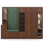 Прихожая Октэн 27 BMS объединила в единую композицию все необходимое для бережного размещения одежды, обуви, хранения под рукой средств по уходу, аксессуаров и прочих мелочей. В комплекте дополненные антресолями платяной шкаф, пенал и колонка, открытая вешалка, обувница, практичный зеркальный шкафчик и тумба. Уютные рамочные фасады древесных оттенков сочетаются с обивкой в экокоже, украшенной каретной стяжкой. Купить прихожую Октэн 27 BMS вы сможете в нашем интернет-магазине по выгодной цене.
