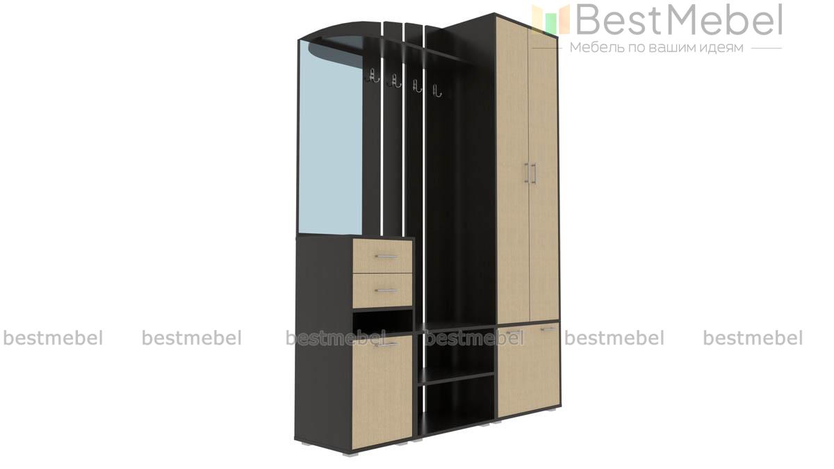 Прихожая Олимп 03 BMS выглядит стильно и модно. Большое зеркало, красивое цветовое оформление, оригинальные ножки и прочая фурнитура – все это придает мебели красивый и изысканный вид. При этом модель удобная и функциональная. Изделие имеет вместительный двухстворчатый шкаф с тумбой для обуви, открытую вешалку с верхним отделением и полками внизу, небольшой комод с тремя отделениями и нишей посредине. У нас Вы можете купить прихожую Олимп 03 BMS недорого с доставкой и сборкой.