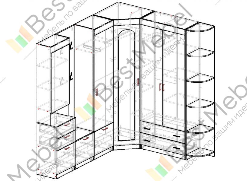 Шкаф угловой(белье-платье) 736х2100х420 мм;