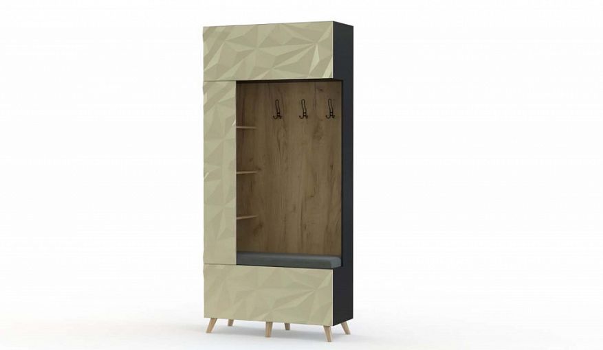 Прихожая Шерли 11.1 BMS станет частью модульной композиции или самостоятельным предметом интерьера. Для удобного размещения одежды, обуви, аксессуаров и важных мелочей прихожая оборудована обувницей с мягкой обивкой сиденья, торцевыми полками, антресолью с открывающейся вверх дверцей и скрытой в нише вешалкой. Геометричная 3D фрезеровка добавит интерьеру индивидуальности, а высокие скошенные ножки придадут конструкции легкость. Купить прихожую Шерли 11.1 BMS вы сможете в нашем интернет-магазине, подобрав размеры и цветовое решение.