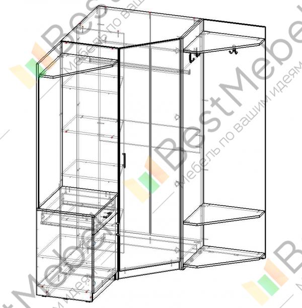 Прихожая Вероника BMS позволяет задействовать редко используемое угловое пространство. Трапециевидный распашной шкаф для одежды дополнен модулем с тумбой и зеркалом и открытой вешалкой. Скошенные по углам боковые полки делают пользование в маленьком помещении комфортным и безопасным, а теплая натуральная фактура прихожей придает интерьеру уютный вид. Купить прихожую Вероника BMS вы сможете в нашем интернет-магазине, подобрав оптимальные размеры.