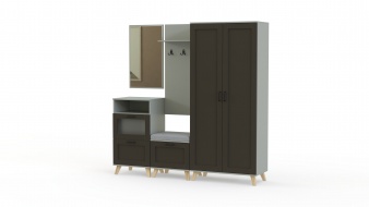 Прихожая Веста 10.2 BMS выполнена в современной стилистике, а элегантные рамочные фасады придают интерьеру классические черты. Двухдверный платяной шкаф, обувница с мягкой обивкой сиденья, навесная вешалка и дополненный зеркалом комод гармонично сочетаются друг с другом. Темные матовые фасады со стеклом визуально облегчают прихожую в трендовом сером оттенке. Купить прихожую Веста 10.2 BMS вы сможете на сайте нашего интернет-магазина с выбором фурнитуры и цвета по каталогу.