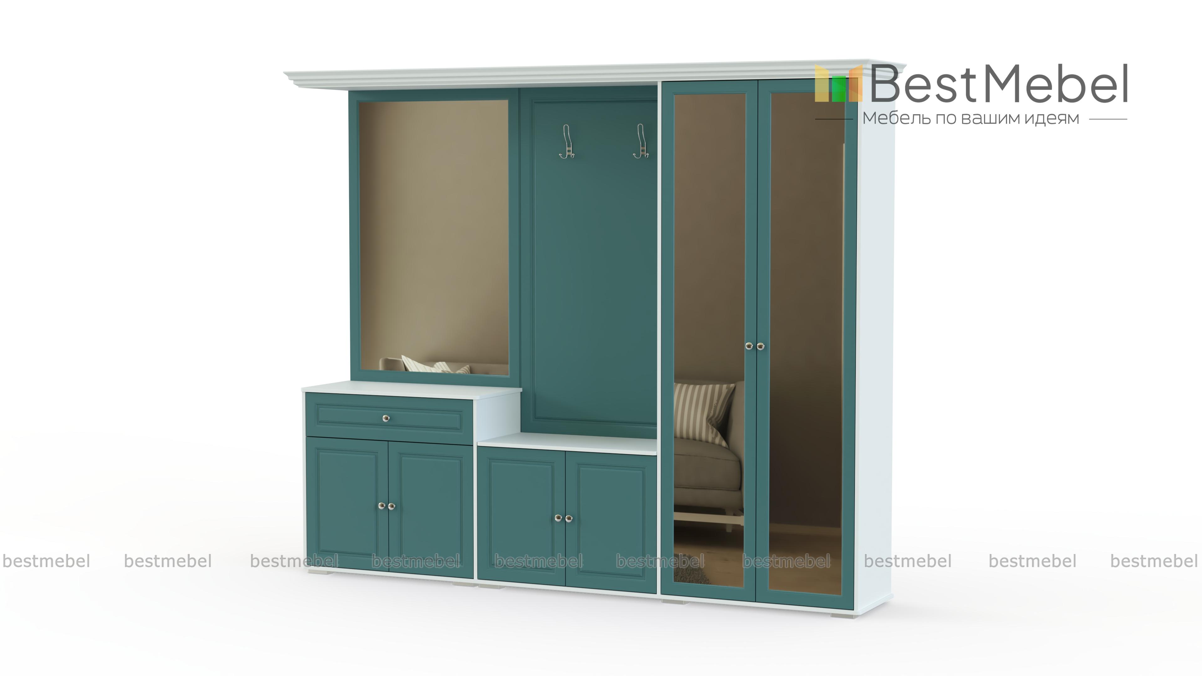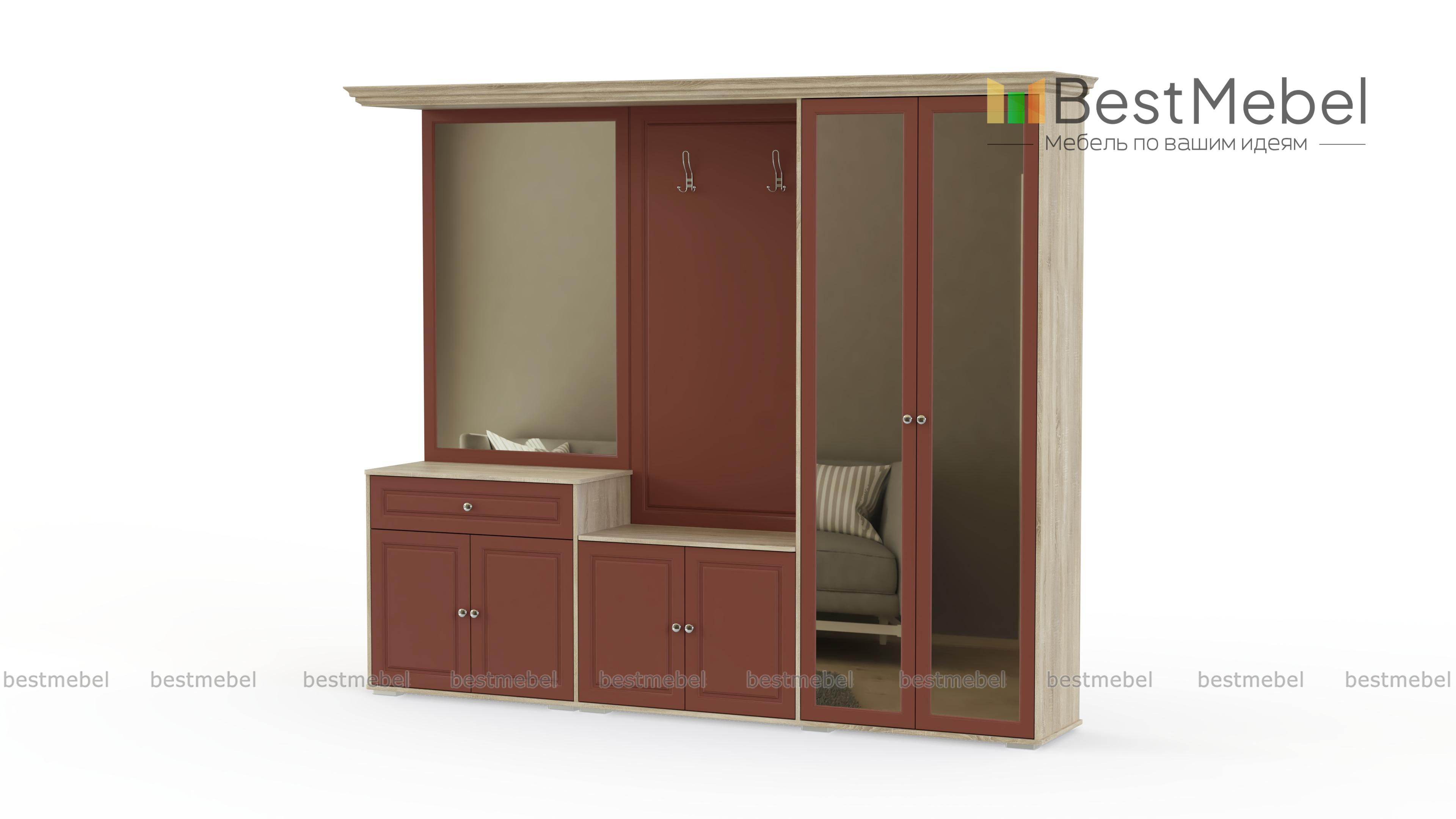 Прихожая Янна 04 BMS очень стильная модель отлично смотрится и в большом, и в маленьком помещении. При этом она имеет все необходимое для удобного пользования: двухстворчатый шкаф для верхней одежды, небольшую открытую вешалку, тумбочку под обувь с полкой посредине, комод, с выдвижным ящичком и большим отделением с полками, зеркала. Мебель расположена на невысоких стильных ножках. В нашем интернет-магазины Вы можете купить прихожую Янна 04 BMS недорого с доставкой и сборкой.