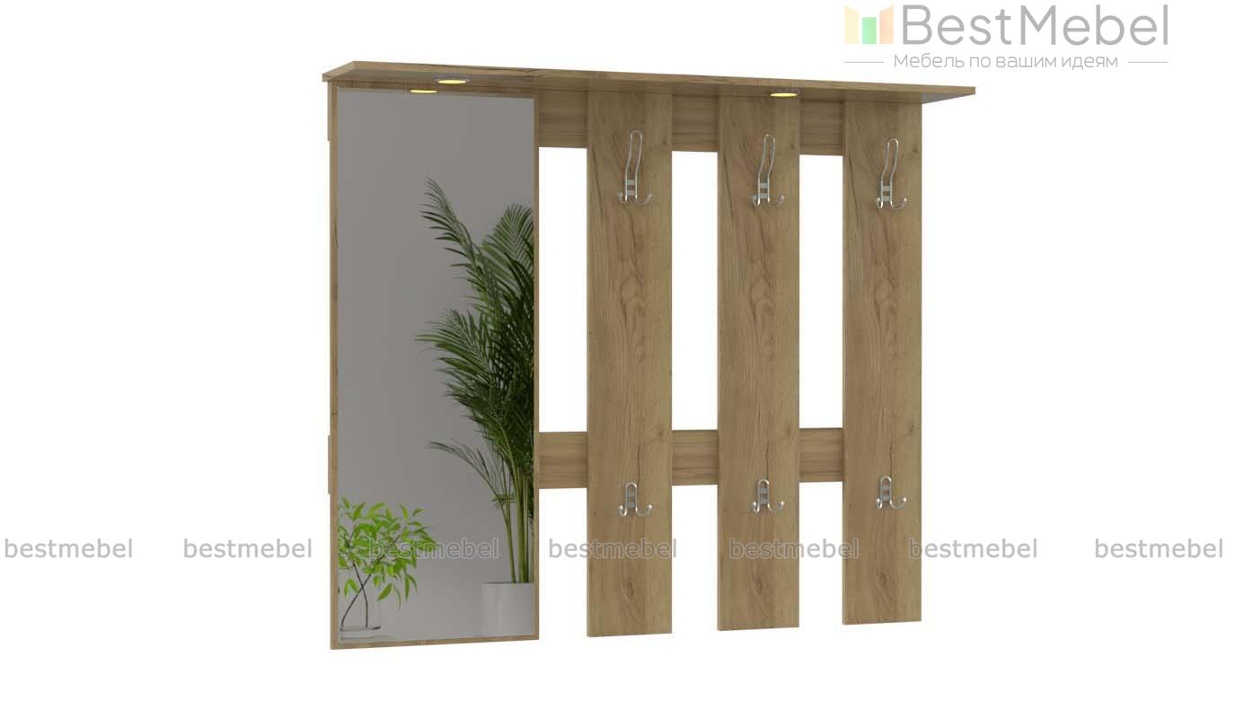 Вешалка Фанни 1 BMS станет практичным дополнением современной прихожей, помогая легко поддерживать порядок. Выполненная из ламинированной плиты высокого качества с имитацией массива дерева, модель объединила три широких планки с парными крючками для одежды и аксессуаров и большое зеркало. Встроенная в просторную верхнюю полку подсветка делает пользование особенно удобным, а интерьер - уютным. Купить вешалку Фанни 1 BMS с выбором цвета и размеров вы сможете недорого в нашем интернет-магазине.