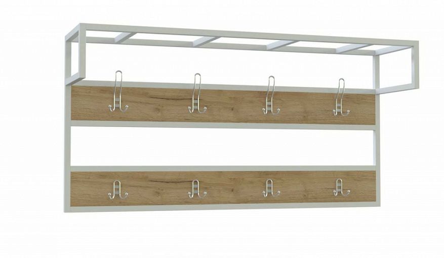 Вешалка Фьюжн 2 BMS – это двухъярусная модель в стиле лофт, оборудованная всем самым необходимым для размещения в открытом доступе одежды, аксессуаров и головных уборов. Две горизонтальные планки с четырьмя парами крючков дополнены решетчатой верхней полкой и боковыми держателями для плечиков. Сочетание износостойкой ламинированной плиты с металлическим профилем делает конструкцию легкой, прочной и долговечной. Купить вешалку Фьюжн 2 BMS вы сможете в нашем интернет-магазине с выбором цвета и размеров.