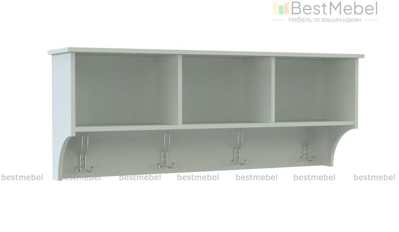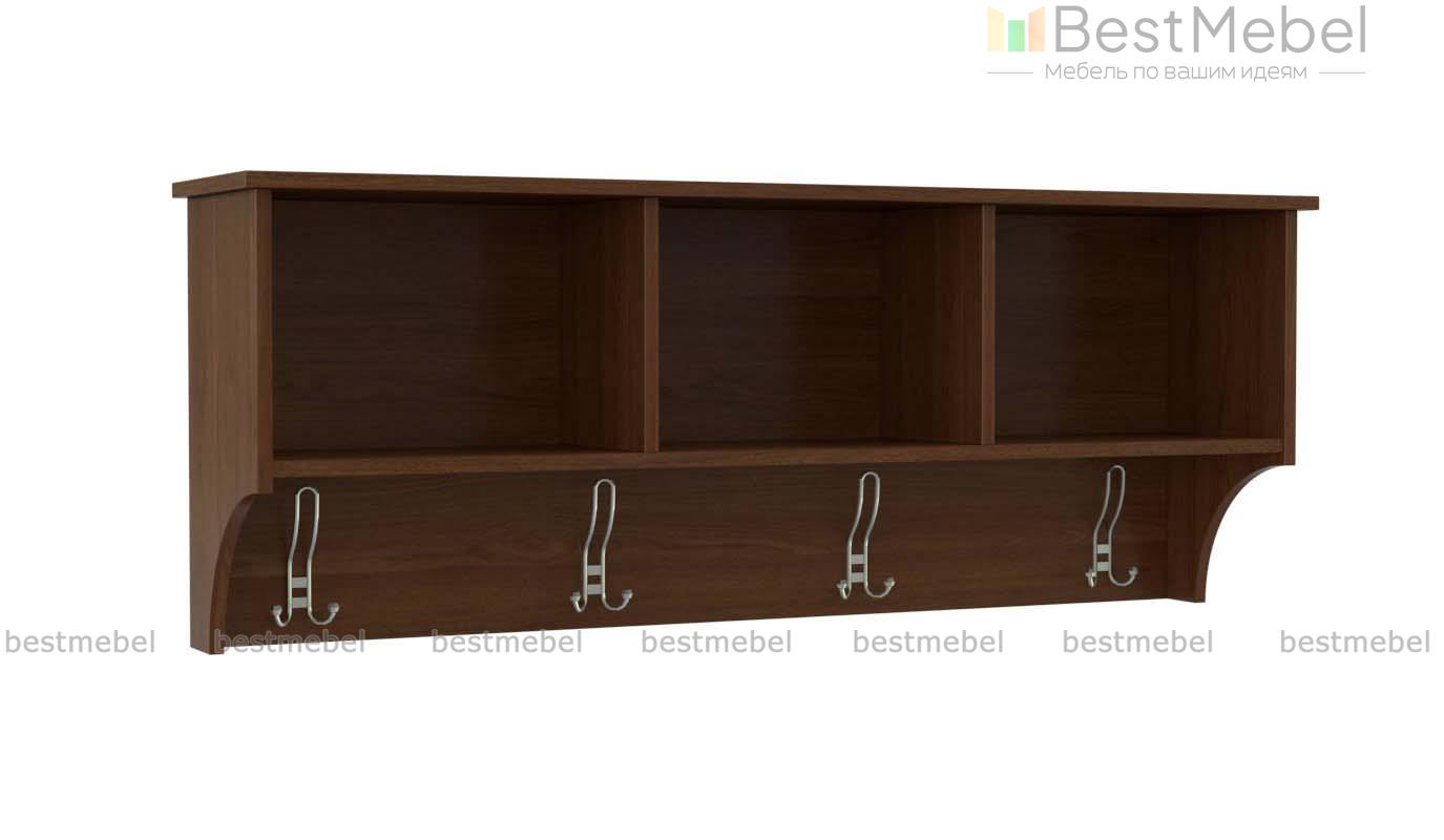 Вешалка Гера 1 BMS компактна и не занимает много места, что будет особенно важно для малогабаритных прихожих. Горизонтальная навесная модель оборудована четырьмя крючками для размещения одежды и аксессуаров и трехсекционной верхней полкой под головные уборы и прочие вещи. Закрытые фигурно вырезанные боковины придают вешалке классическую элегантность. Купить вешалку Гера 1 BMS вы сможете в нашем интернет-магазине, подобрав классическое или трендовое цветовое решение.
