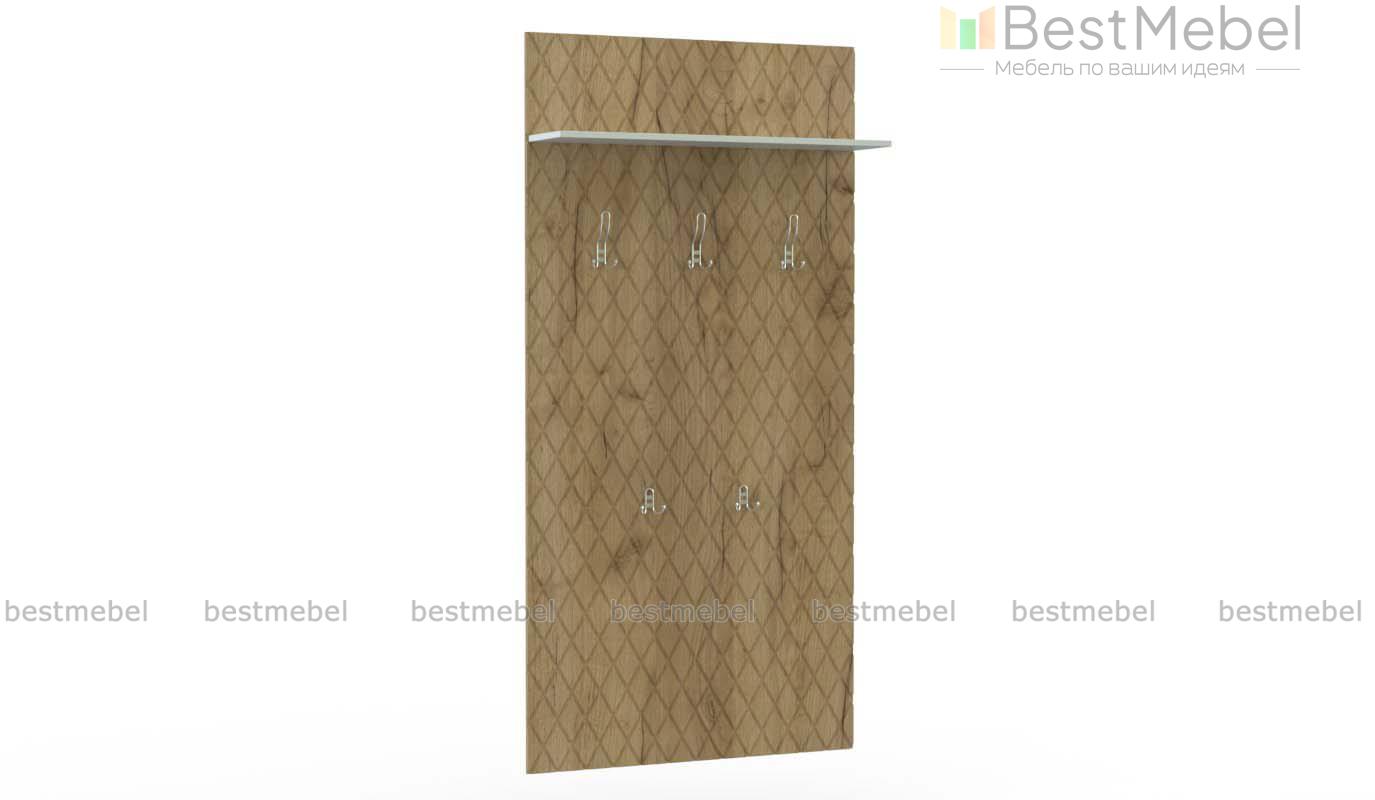 Вешалка Глория 6 BMS представляет собой широкую вертикальную панель, украшенную изящными фрезерованными ромбами. Навесная конструкция вешалки экономно использует пространство и визуально облегчает интерьер. Для удобного размещения повседневной одежды, аксессуаров и головных уборов модель оборудована тремя большими и двумя малыми крючками, расположенными на двух уровнях, и просторной верхней полкой. Купить вешалку Глория 6 BMS вы сможете в нашем интернет-магазине, подобрав цветовое решение.