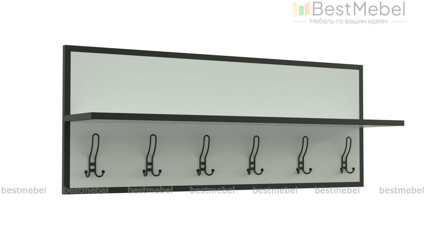 Вешалка Молли 4 BMS выполнена из износостойкой ламинированной плиты, а металлический каркас придает конструкции дополнительную прочность. Горизонтальная навесная модель оборудована шестью крючками для размещения в быстром доступе одежды и аксессуаров и полкой под головные уборы. Вешалка надежно крепится на удобной для вас высоте и экономит полезную площадь прихожей. Купить вешалку Молли 4 BMS для интерьера в индустриальном стиле приглашаем в наш интернет-магазин.