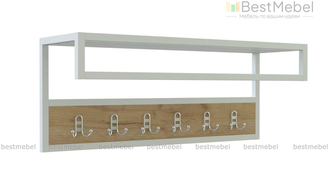 Вешалка Мюнхен 4 BMS, выполненная из ламинированной плиты с имитацией массива дерева и металла, гармонично впишется в пространство лофта. Благодаря навесной конструкции широкая панель экономит полезную площадь прихожей. Вешалка оборудована шестью крючками для размещения в открытом доступе одежды и аксессуаров, решетчатой верхней полкой под головные уборы и металлической штангой для плечиков. Купить вешалку Мюнхен 4 BMS и организовать удобное хранение вещей вам поможет наш интернет-магазин.