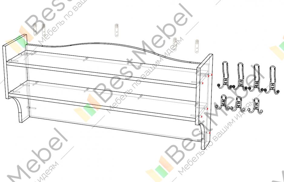 Вешалка Одри Лайт 3 BMS – это горизонтальная модель в классическом стиле с изящно вырезанными боковинами и верхом. Навесная вешалка крепится на любой удобной высоте, экономит полезную площадь и визуально облегчает интерьер. Семь больших и малых крючков помогут разместить в быстром доступе верхнюю одежду и аксессуары, а для головных уборов предусмотрены две широкие полки. Купить вешалку Одри Лайт 3 BMS и оборудовать комфортную и эстетичную входную зону вам поможет наш интернет-магазин.