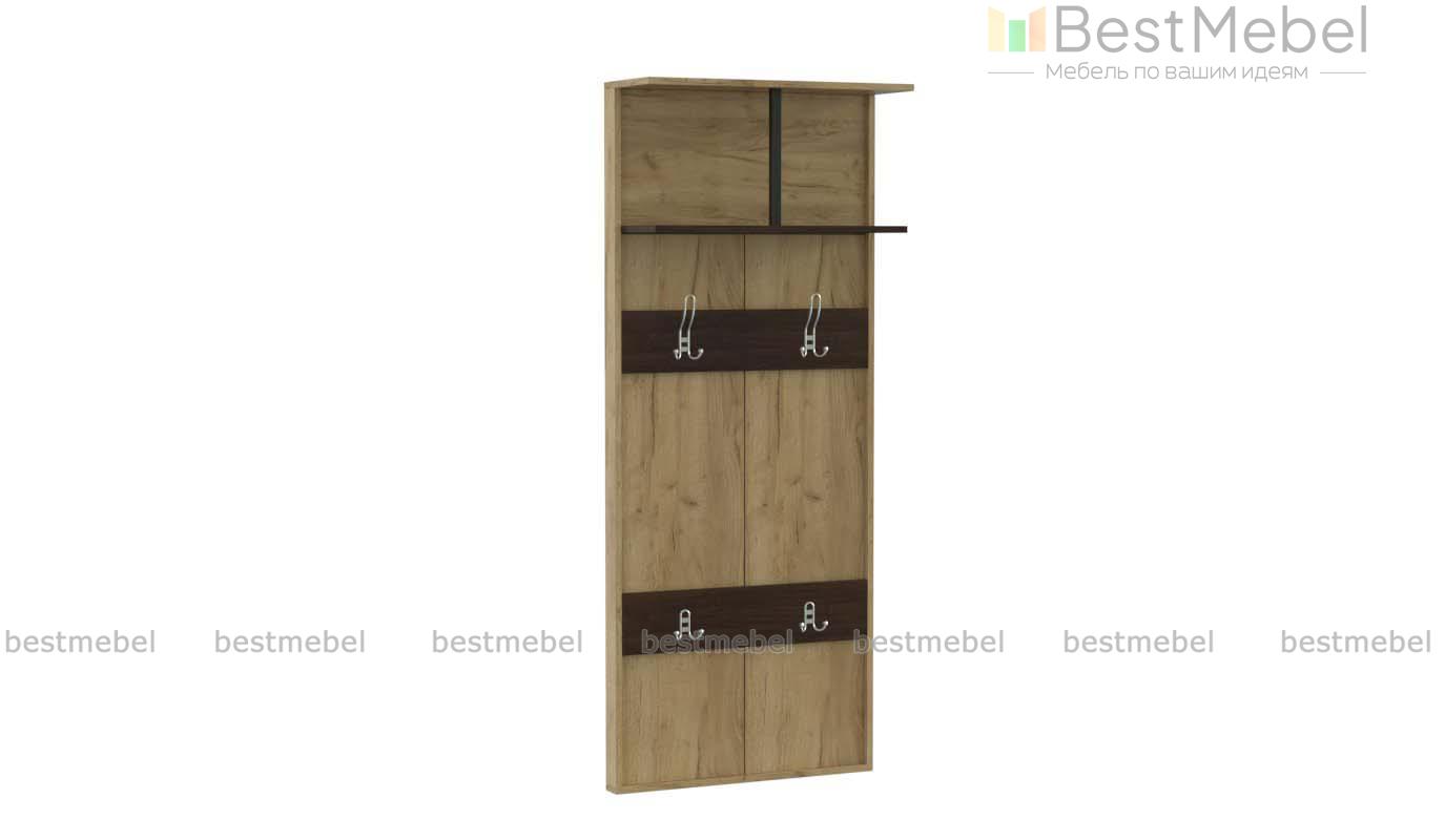 Вешалка Офелия 12 BMS выполнена из широких панелей с имитацией массива дерева и контрастным декором. Узкая настенная модель с чуть утопленным фасадом станет элементом дизайна современной прихожей и поможет легко поддерживать порядок. Для компактного размещения верхней одежды, аксессуаров и головных уборов вешалка оборудована четырьмя крючками, закрепленными на двух уровнях, и двумя верхними полками с металлической опорой. Купить вешалку Офелия 12 BMS вы всегда сможете в нашем интернет-магазине.