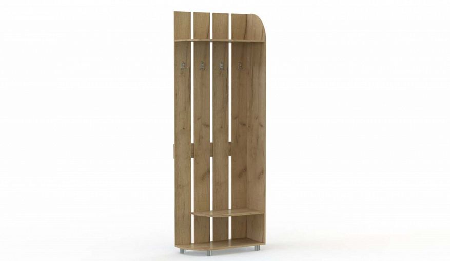 Вешалка угловая Астра 5 BMS поможет вам оборудовать комфортную входную зону в небольшой прихожей. Компактная напольная конструкция из отдельных вертикальных планок оснащена крючками для одежды и аксессуаров и открытыми скругленными полками в верхней и нижней части. Выполненная из качественной ламинированной плиты, вешалка отличается широким выбором цветовых решений и доступной ценой. Купить вешалку угловую Астра 5 BMS вы сможете на сайте нашего интернет-магазина.