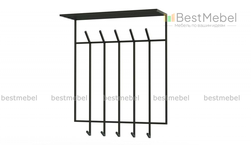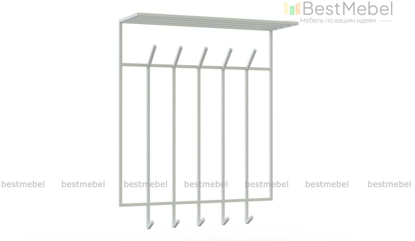 Вешалка Ульма 1 BMS выполнена из металлического профиля, который придает ей визуальную легкость и прочность. Благодаря навесной конструкции модель крепится на удобной для вас высоте и экономно использует пространство прихожей. Вешалка оборудована пятью парами крючков для размещения в быстром доступе одежды и аксессуаров и решетчатой верхней полкой под головные уборы. Купить вешалку Ульма 1 BMS для создания интерьера в индустриальном стиле вы сможете в нашем интернет-магазине.