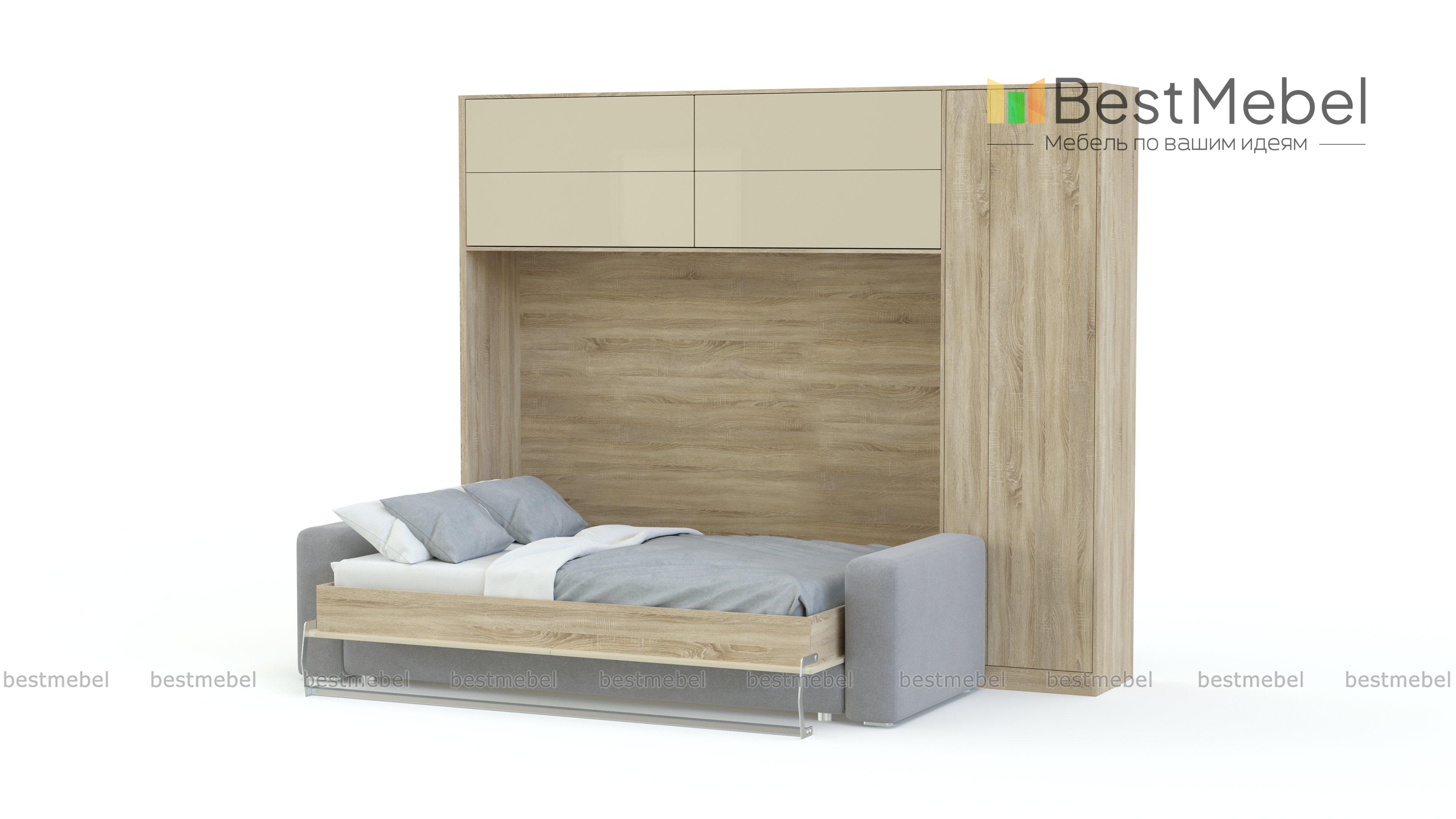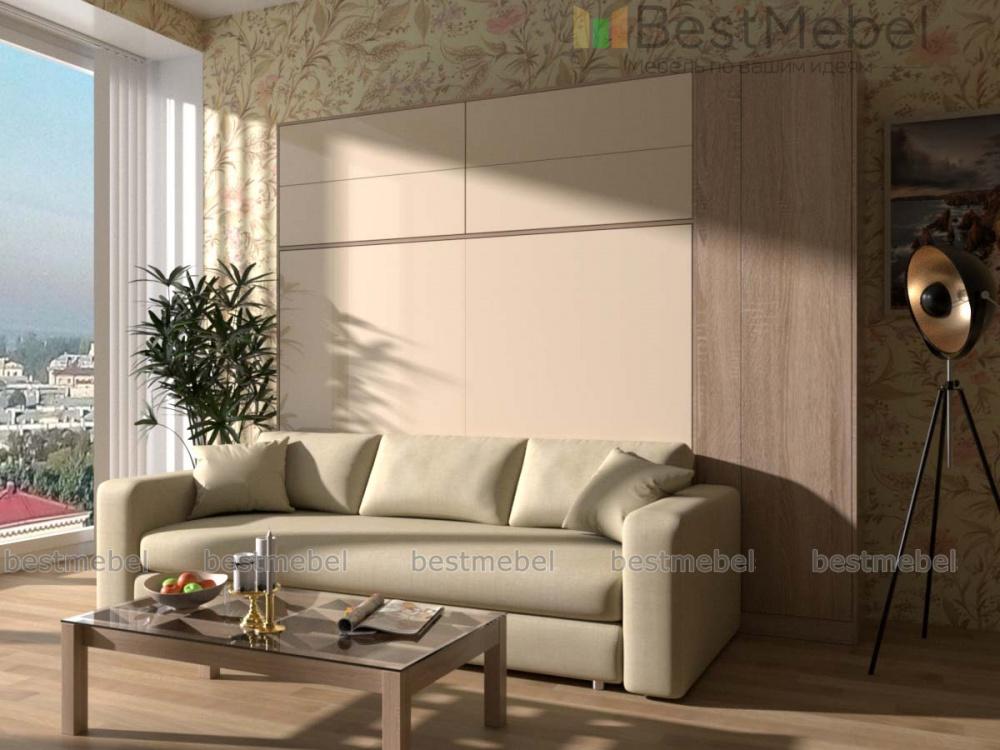 Кровать-трансформер с диваном Григо BMS гармонично вписывается в узкие пространства за счет горизонтального механизма раскладывания. Композиция включает в себя комфортное кресло минималистичного дизайна и небольшой глубины шкаф, за фасадом которого скрыта полноценная двуспальная кровать. Сочетание нежного ванильного глянца и светлых древесных тонов эффектно дополнит современные интерьеры. Купить кровать-трансформер с диваном Григо BMS и сэкономить полезную площадь вам поможет наш интернет-магазин.