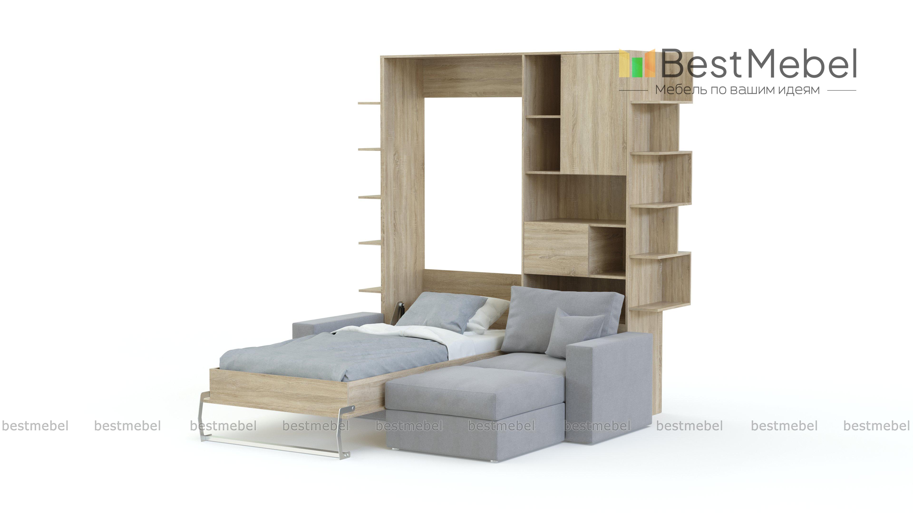 Шкаф-кровать с диваном Диалог BMS – простой и эффективный способ решить проблему нехватки полезной площади. Многофункциональная композиция объединила вместительную стенку с глухими и открытыми полками, компактный угловой диван и модуль-трансформер. Вы сможете разместить большое количество бытовых мелочей, а при необходимости получить полноценное спальное место. Исполнение в нейтральных древесных тонах делает модель универсальной. Купить шкаф-кровать с диваном Диалог BMS для небольшой квартиры или студии приглашаем в наш интернет-магазин.