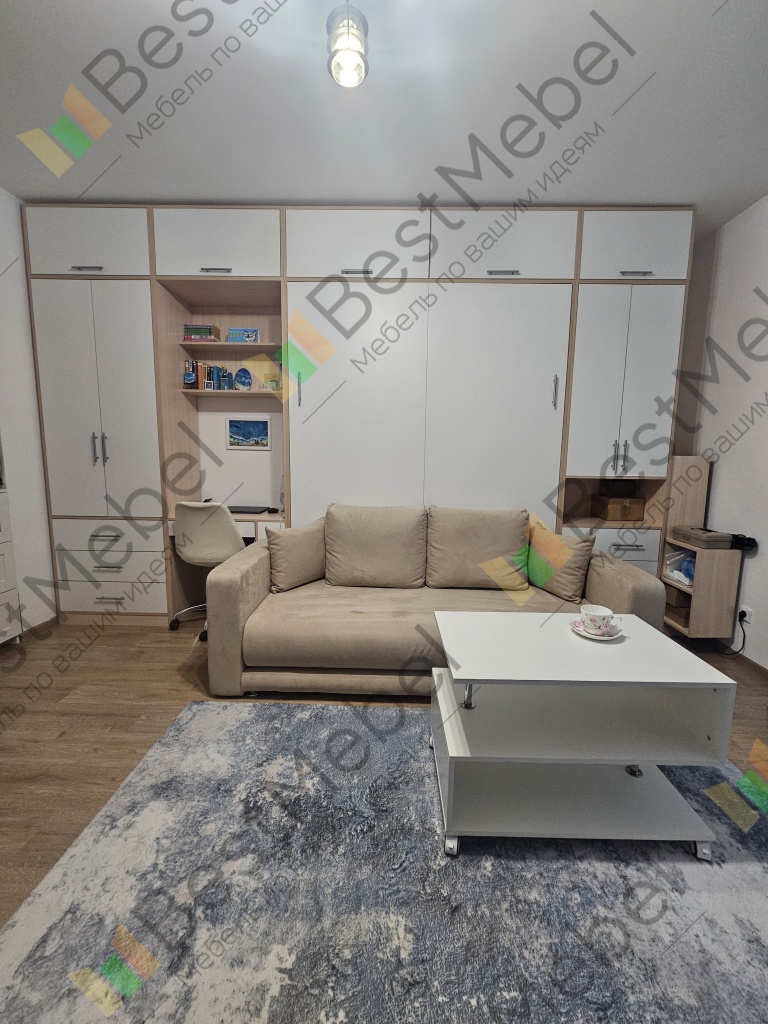 Отличный вариант для студии, где хочется впихнуть всё - и нормальную кровать, и рабочий стол, и много мест для хранения... Надоело спать на диване! Поэтому я закала этот проект по своим размерам, в светлых тонах и очень довольна результатом! 👍Разбирается / собирается легко, постельное и подушки остаются внутри! Очень вместительные антрисоли и шкафы. Единственный огромный минус - это гигантская подушка с дивана, которую некуда деть, под диван она не влазит, приходится ей стену подпирать 🙄 тут нужна доработка 🤔 На подаренные от покупки баллы потом взяла здесь журнальный столик!
