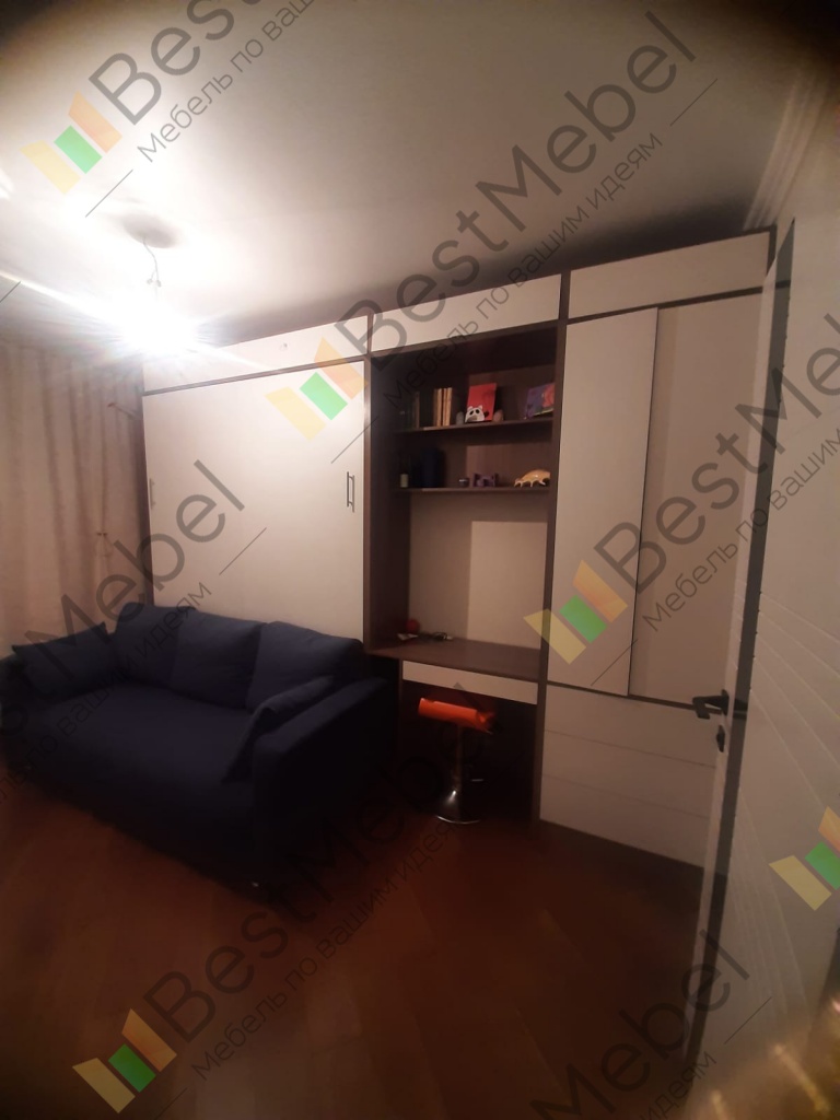 Заказ 00000226012. Изначально хотела заказать готовый проект, как на картинке, но кое-что не устраивало. Проект полностью переделали по моим хотелкам. Было бы очень удобно, если бы сидушка дивана убиралась вниз, а то приходится прятать ее в шкаф. Мебель в комнату подростку, диван превращается в кровать. С момента оформления заказа до доставки 6 дней.