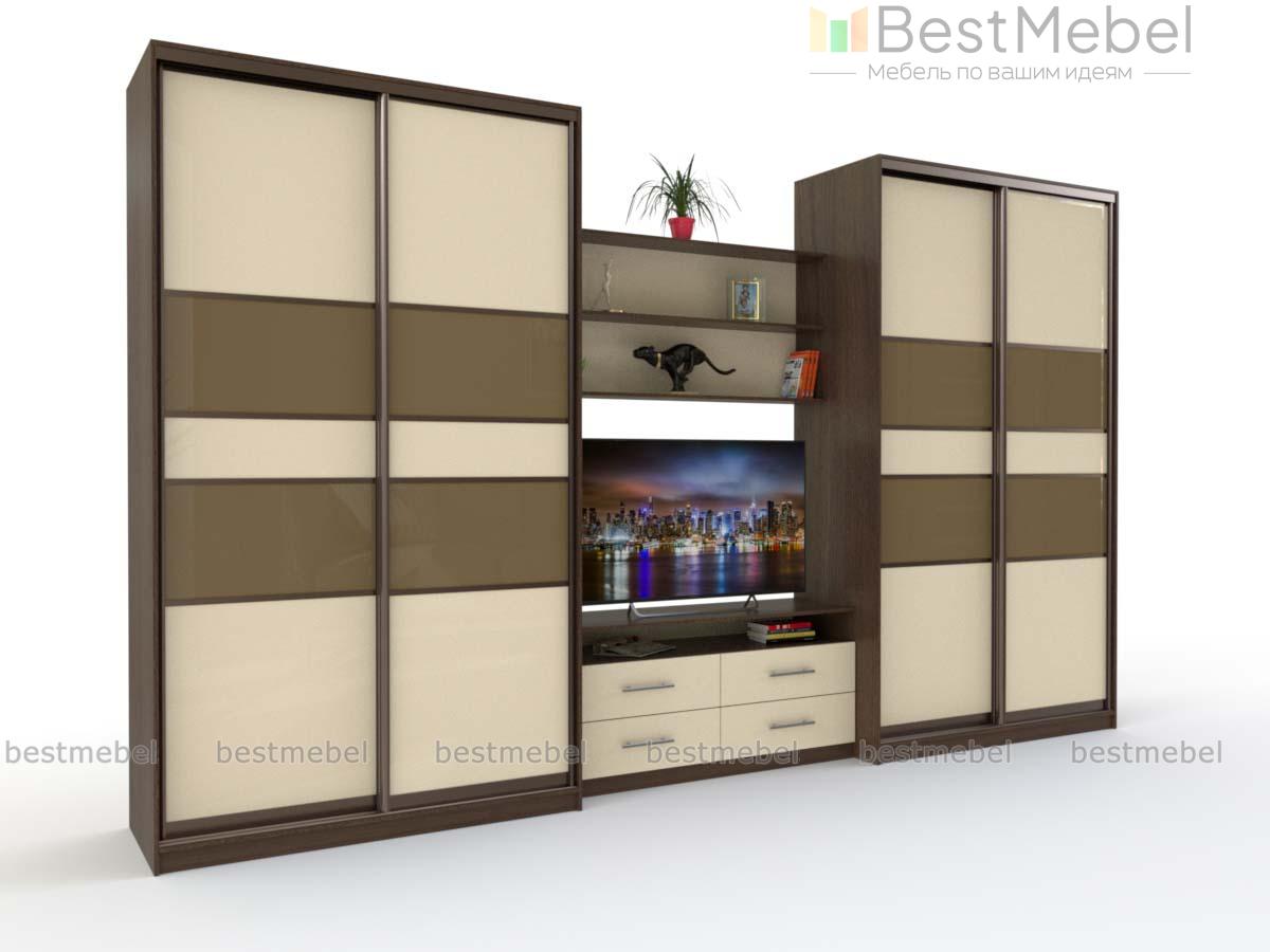 Двойной шкаф-купе Женева 20 BMS сочетает в себе практичность конструкции и элегантный современный дизайн. Вы сможете разместить большое количество вещей, сэкономив на лишней мебели, и оригинально оформить зону ТВ. В комплект входят два двухдверных шкафа-купе, тумба под аппаратуру и межсекционные открытые полки для книг и интерьерных украшений. Выполненная в светлой гамме, модель декорирована по фасаду глянцевыми вставками оттенка капучино. Купить двойной шкаф-купе Женева 20 BMS приглашаем выгодно в наш интернет-магазин.