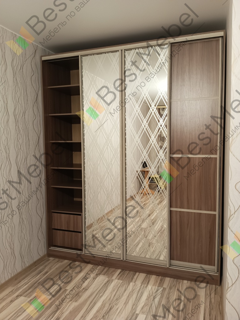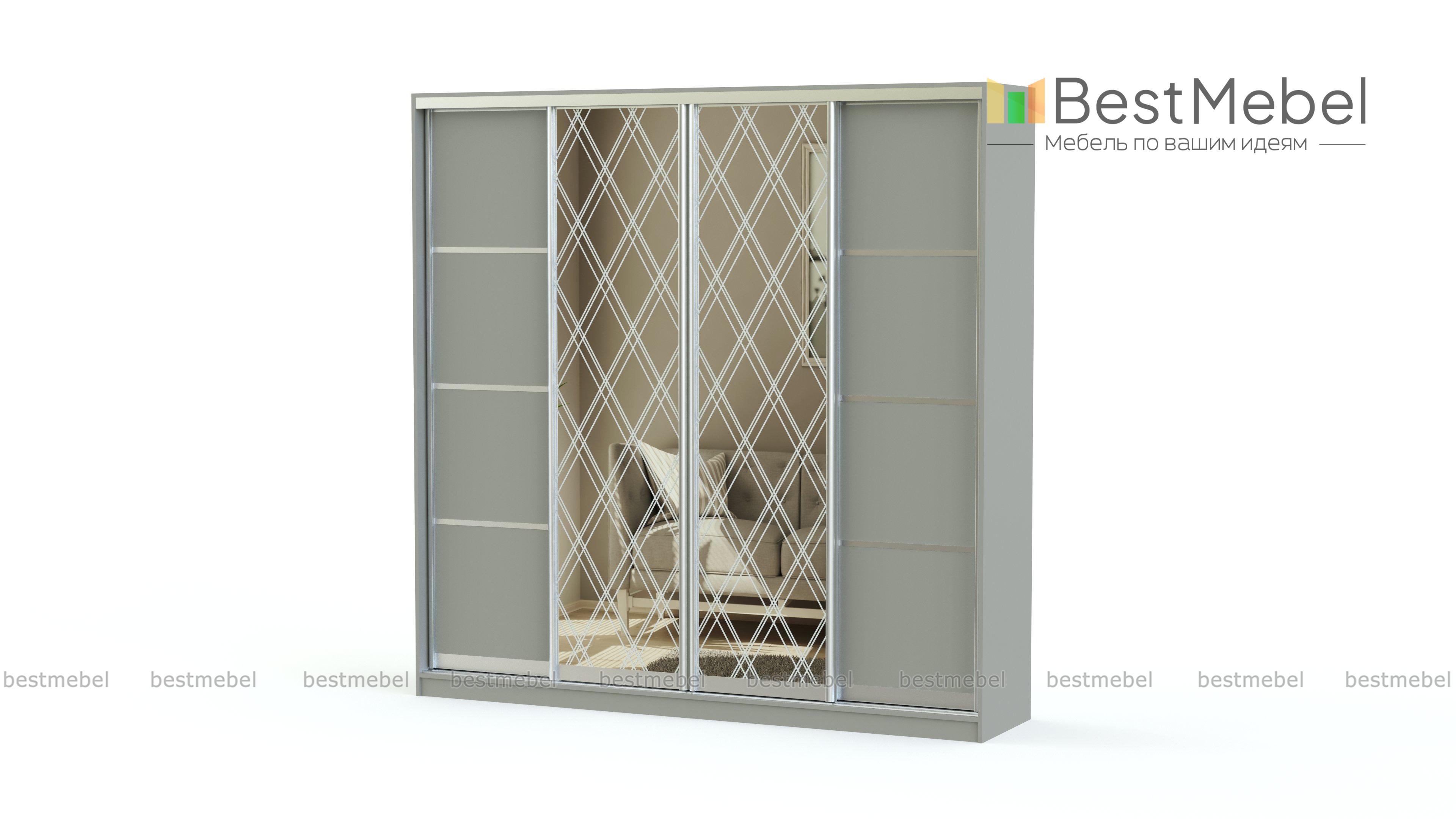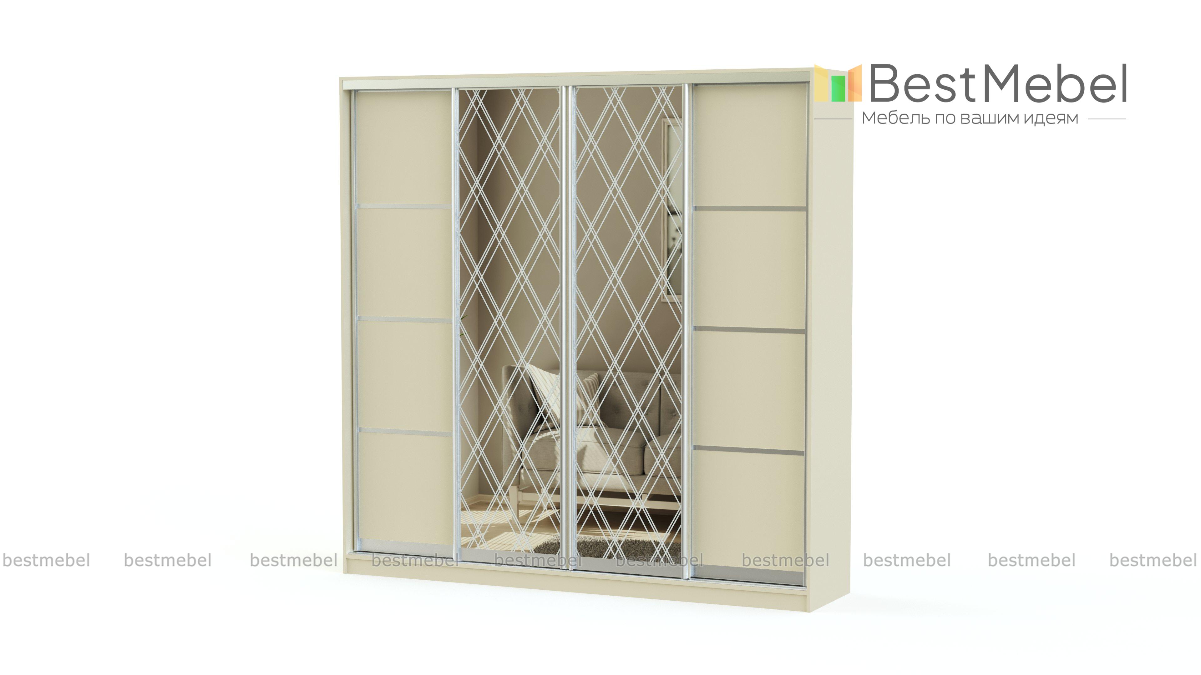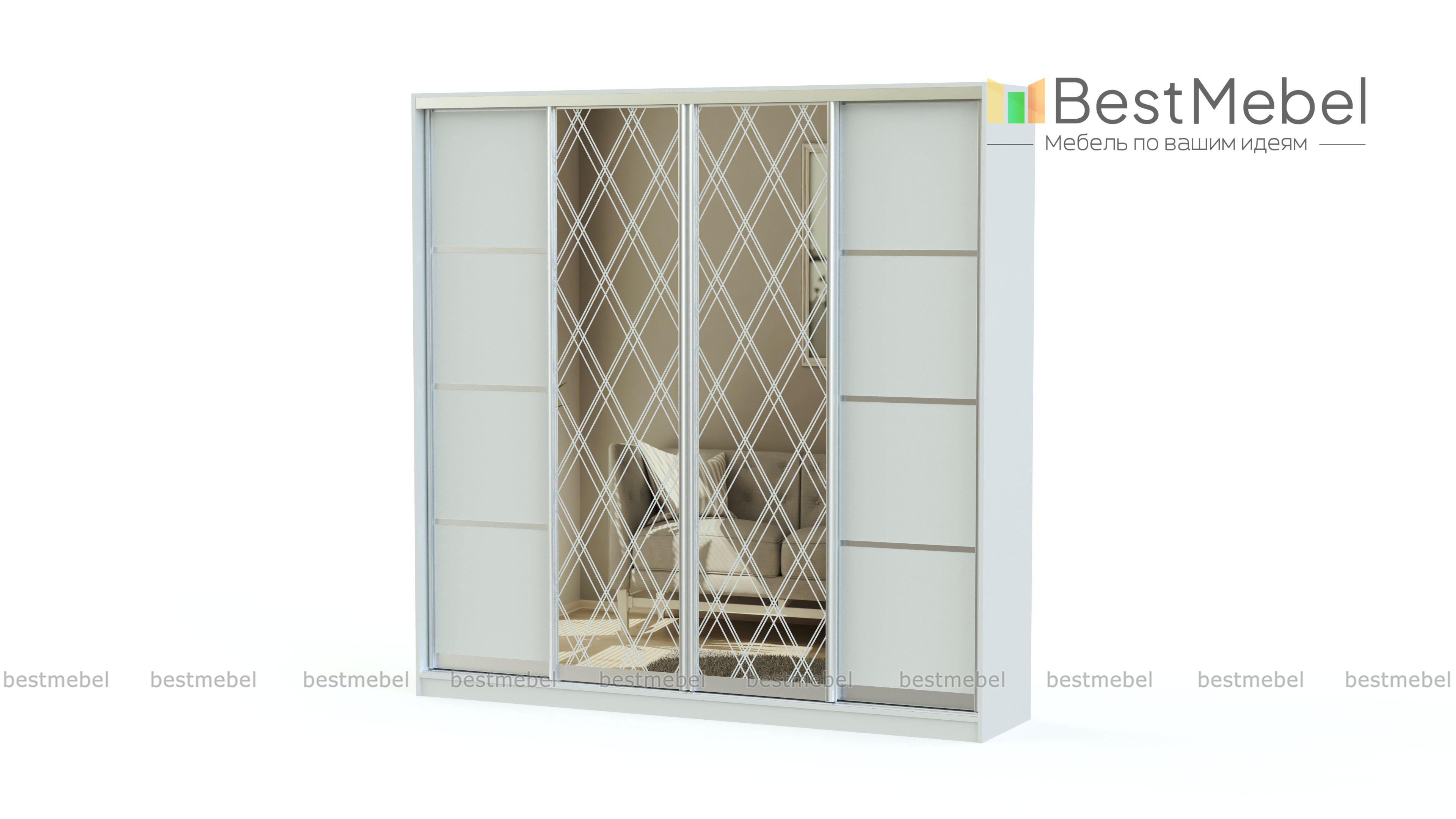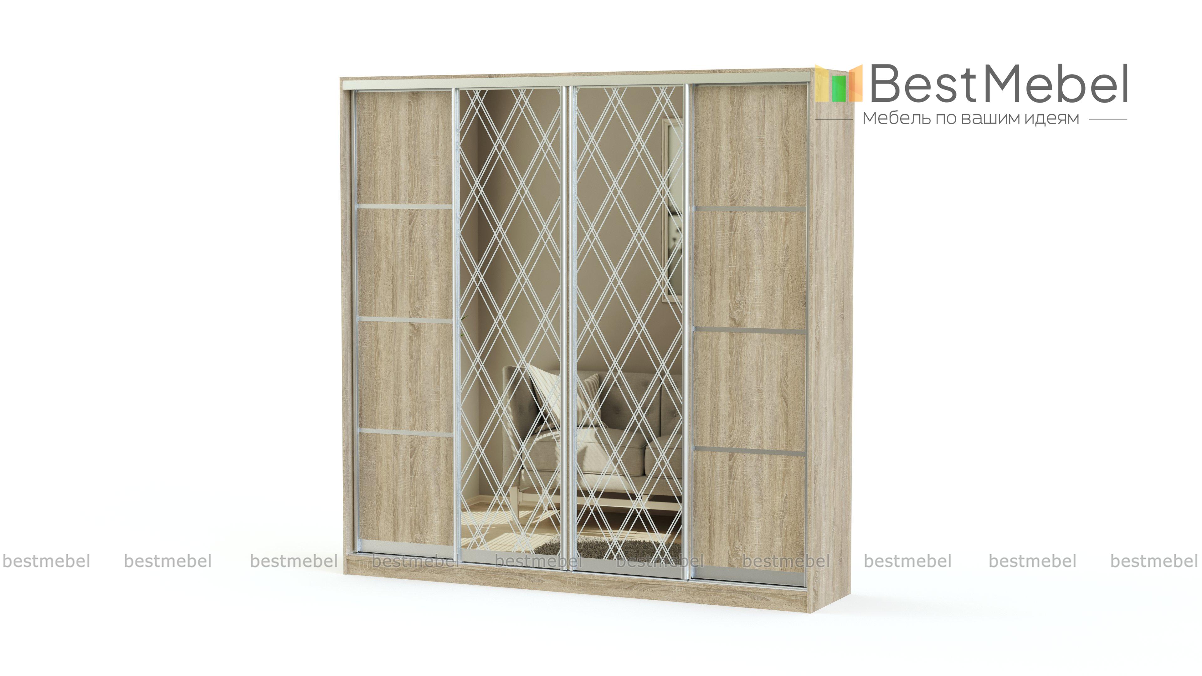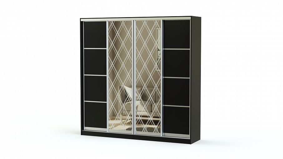 Шкаф-купе 100 Идей D1 BMS - вместительный гардероб в современном стиле. Удобная 4-х дверная модель великолепно впишется в мебельный ансамбль и украсит интерьер спальни. Центральные дверцы полностью зеркальные, их украшает пескоструйный рисунок, который можно подобрать самостоятельно. Такой шкаф поможет хранить самую разнообразную одежду в идеальном порядке. Вариант наполнения изделия можно изменить в момент заказа, отдав предпочтение полкам или штанге. Купить шкаф-купе 100 Идей D1 BMS по минимальной цене и в отличном качестве можно только в нашем интернет-магазине.