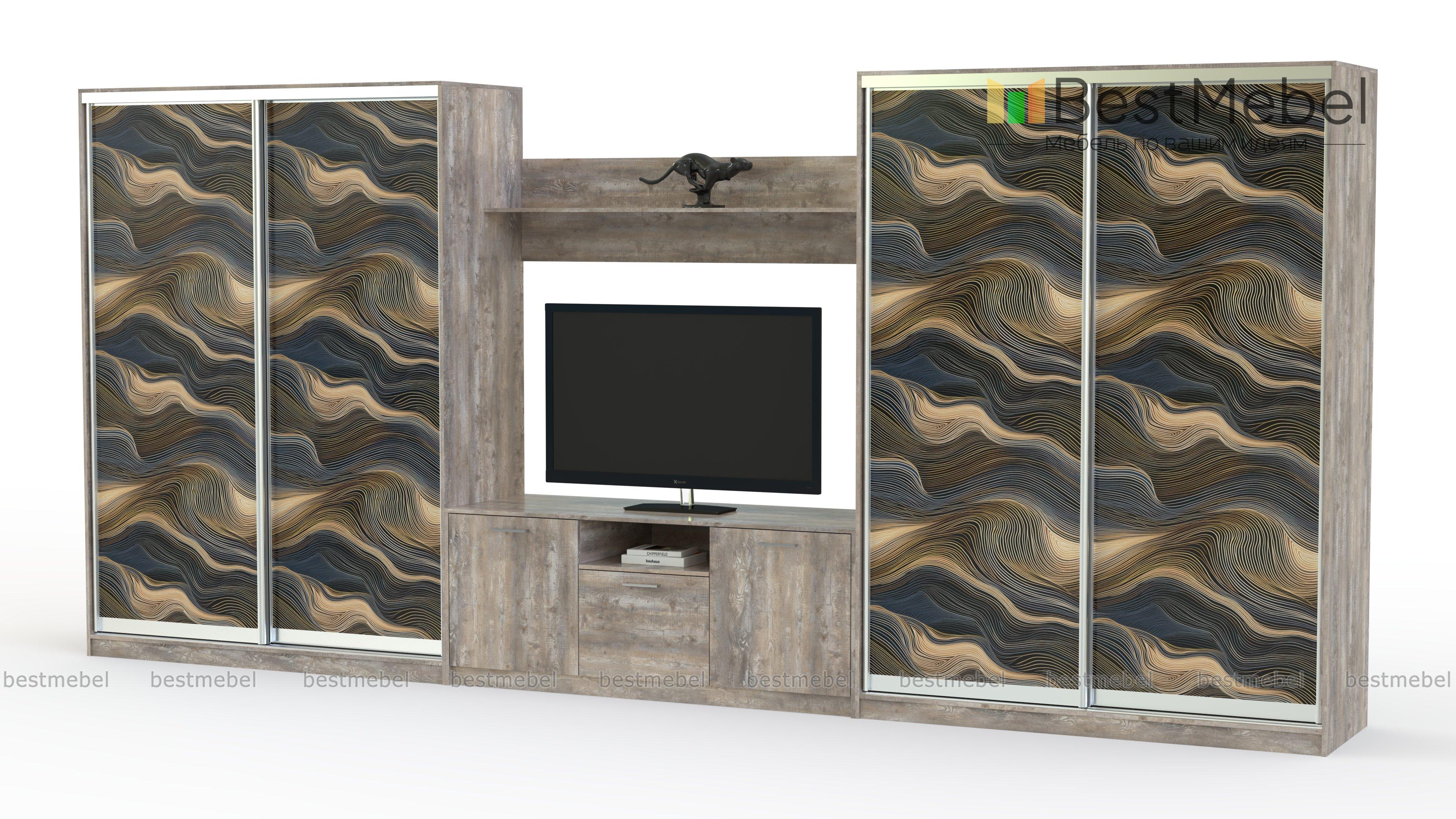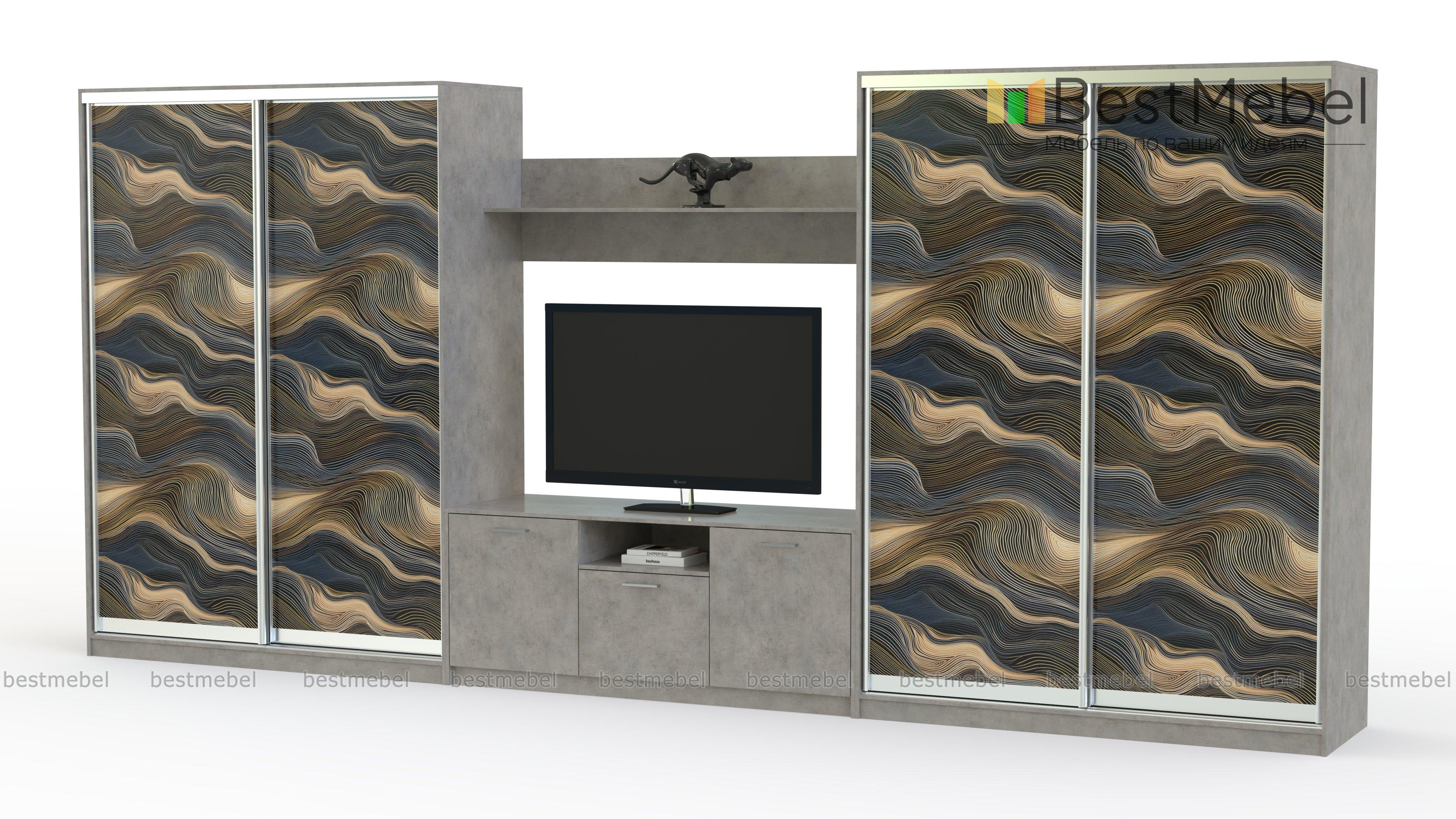Шкаф-купе двойной Сити 24 BMS с минималистичным силуэтом и роскошной фотопечатью имеет модульную конструкцию. Композиция для современной гостиной состоит из двух вместительных платяных шкафов, телевизионной тумбы и навесной полки для книг и интерьерных украшений. Модули простой понятной формы легко комбинируются друг с другом и другой мебелью. Купить шкаф-купе двойной Сити 24 BMS вы сможете на сайте нашего интернет-магазина с выбором фурнитуры и цвета по каталогу.