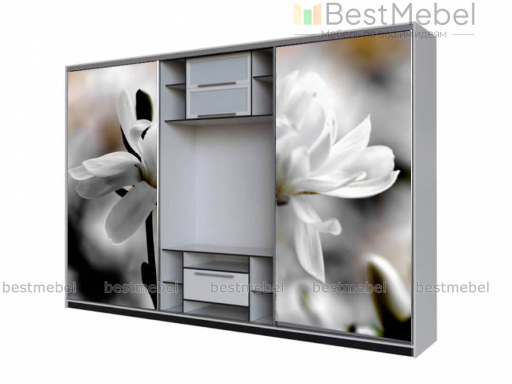 Шкаф-купе двойной Цветы 20 BMS – это минималистичный дизайн и много места для хранения ваших вещей. Крупногабаритная конструкция с двумя раздвижными секциями для одежды, телевизионной тумбой и навесными полками для книг и декора обладает функционалом стенки и эргономичностью. В роли стильного акцента выступает нежный акварельный рисунок на широких фасадах. Купить шкаф-купе двойной Цветы 20 BMS вы сможете в нашем интернет-магазине с выбором нужных размеров, цвета и фурнитуры.