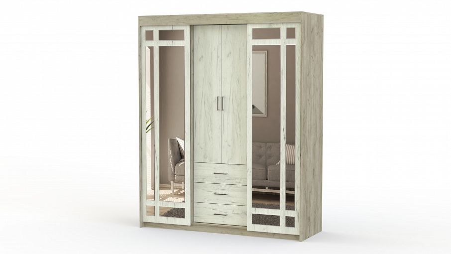 Шкаф-купе Фортуна BMS сочетает в себе достоинства раздвижных и распашных моделей. Два платяных отделения с дверцами-купе разделены вместительной бельевой секцией, оснащенной полками, и тремя выдвижными ящиками. Фасады с имитацией древесной фактуры украшены зеркалами, создавая довольно универсальный и уютный дизайн для спальни или прихожей. Купить шкаф-купе Фортуна BMS вы всегда сможете в нашем интернет-магазине, по желанию изменив цвет и размеры.