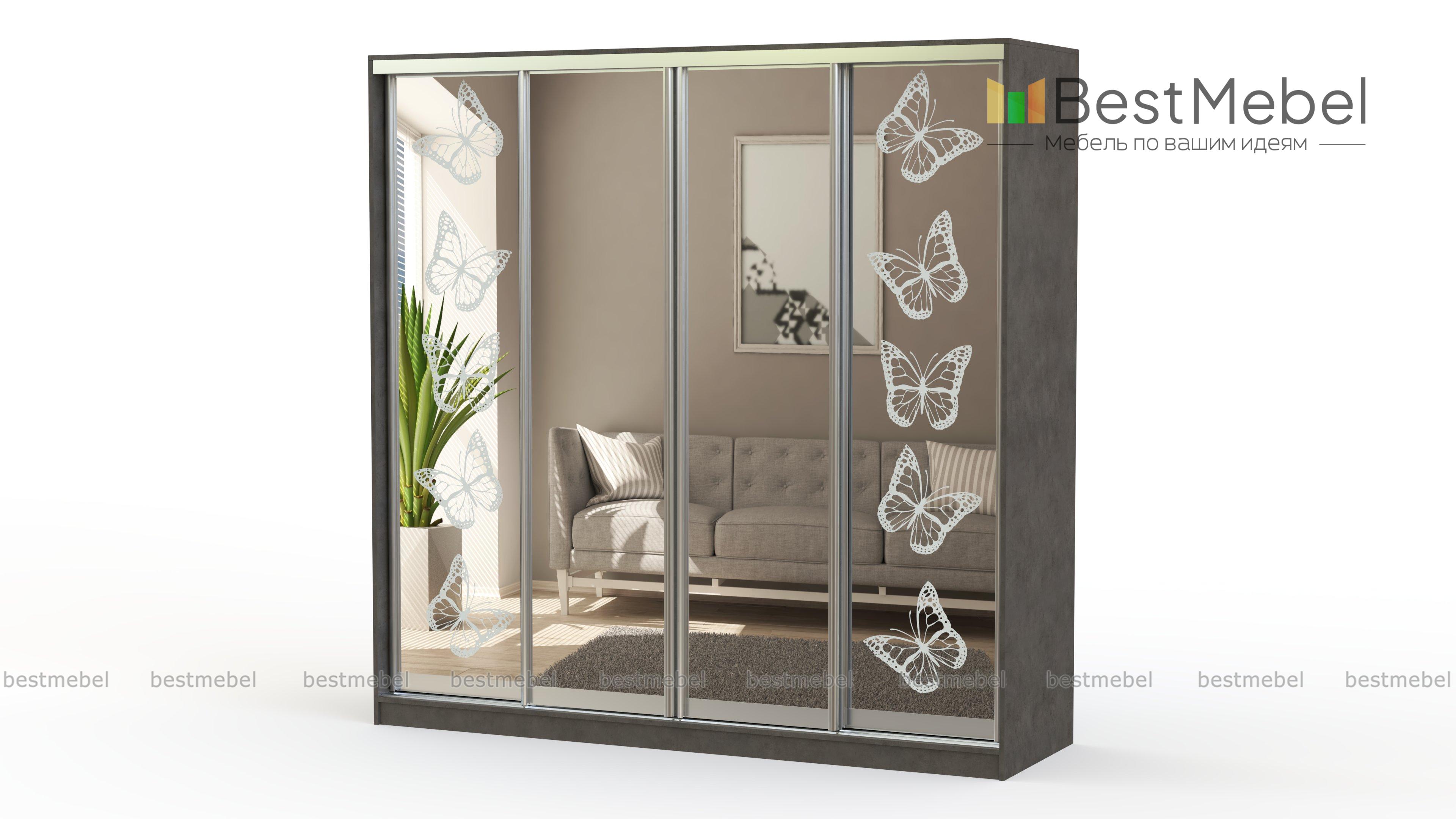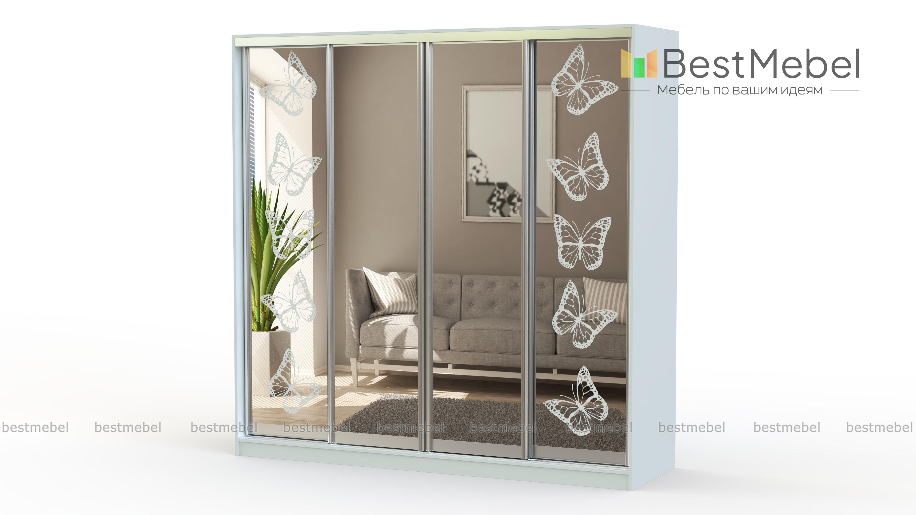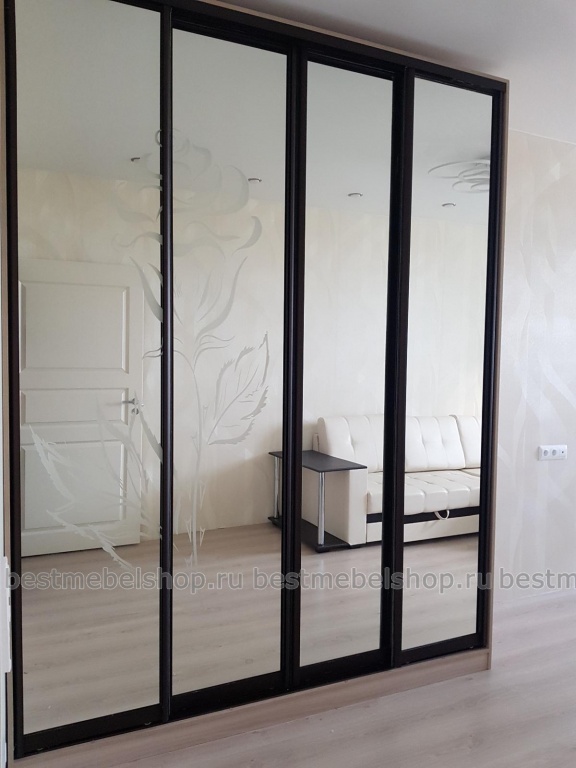 Шкаф-купе Композиция-6 BMS выглядит легко и воздушно с зеркальным фасадом, несмотря на габариты. Боковые створки четырехдверной модели украшает нежный пескоструйный рисунок, преображая привычный интерьер. Благодаря наличию штанг и бельевой секции с полками вы сможете компактно разместить большое количество вещей, а раздвижная конструкция сэкономит пространство. Купить шкаф-купе Композиция-6 BMS с выбором необходимых размеров и компоновки приглашаем в наш интернет-магазин.