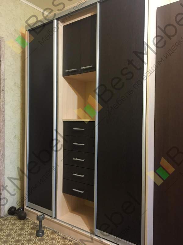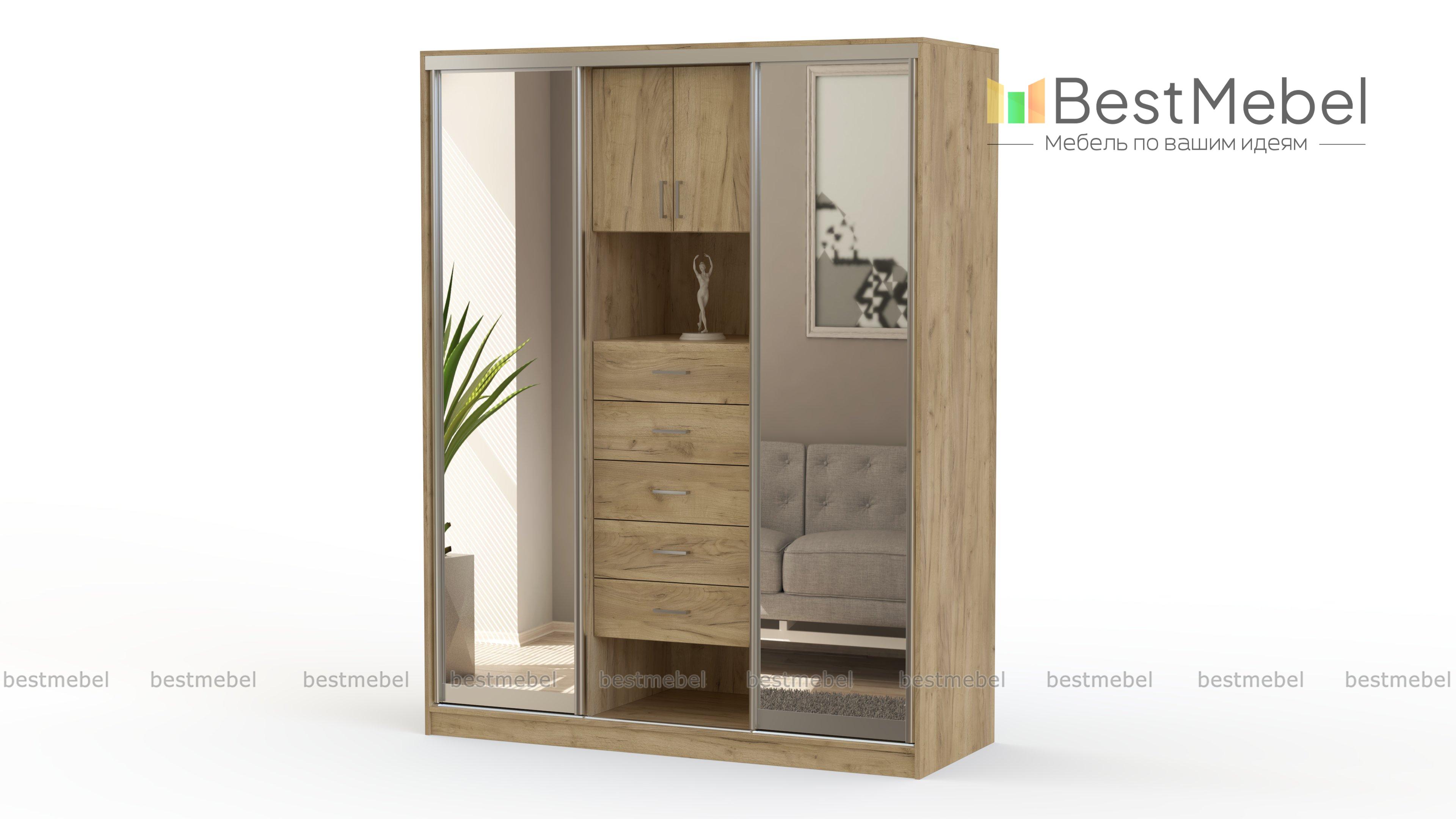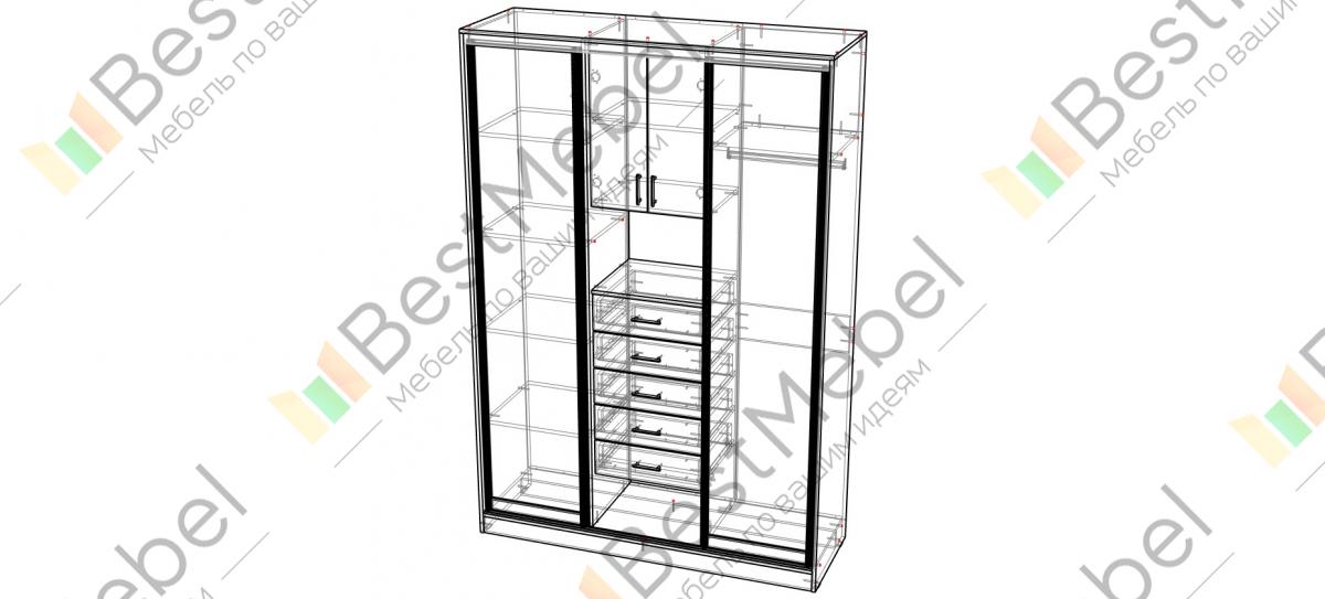 Качественным и долговечным дополнением для интерьера Вашей спальни или прихожей станет шкаф-купе Лорд-1.1. Благодаря своей вместительности и многофункциональности, он приспособлен для хранения почти любого типа вещей: белья, верхней одежды, обуви и аксессуаров. Изысканный стиль и точность линий делают шкаф-купе неимоверно удачным украшением любого дома. Между двумя дверцами шкафа распложены открытые полочки и 5 комодных ящиков и вместительная антресоль. Купить Лорд-1 можно при помощи нашего интернет-магазина.