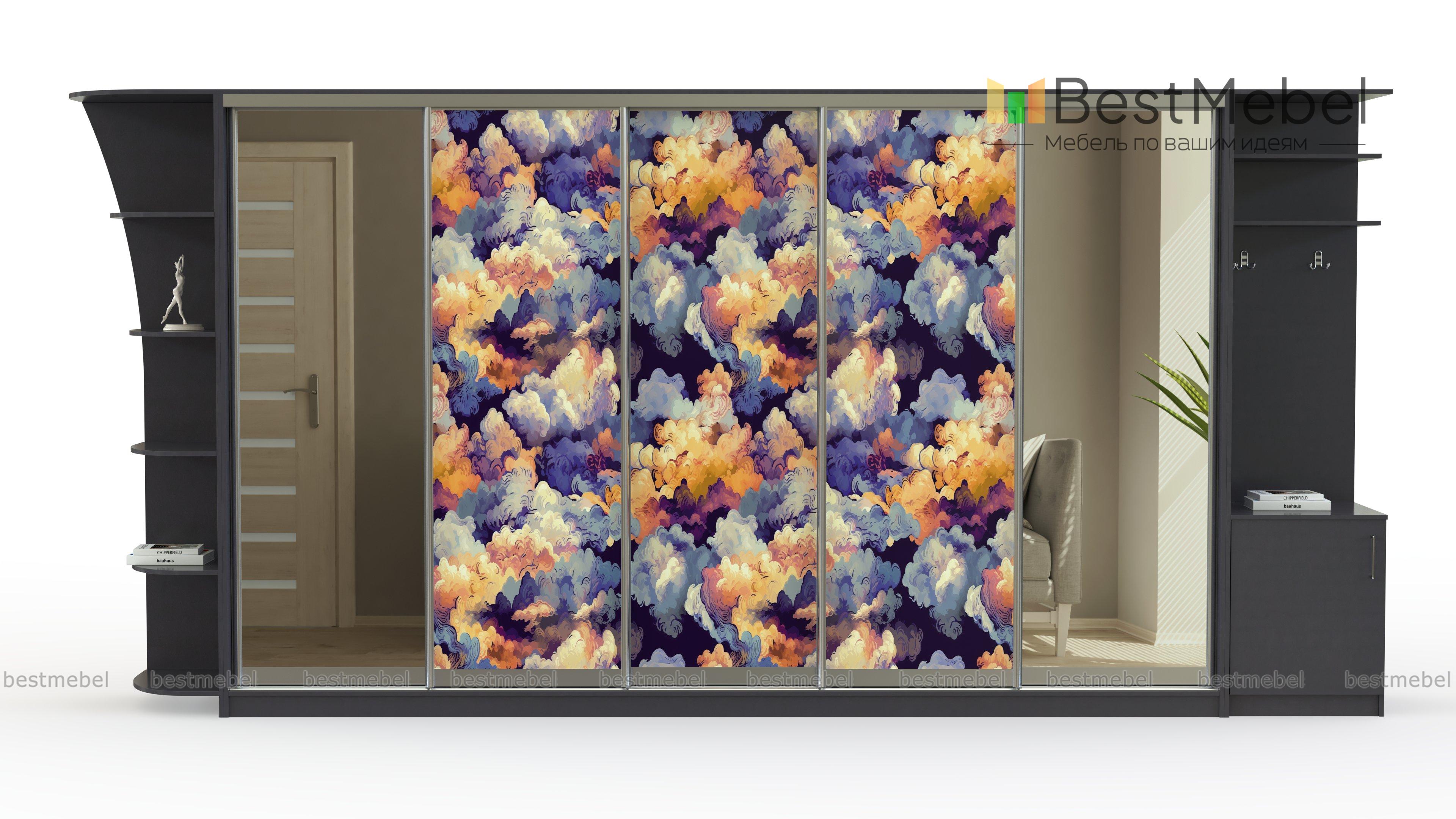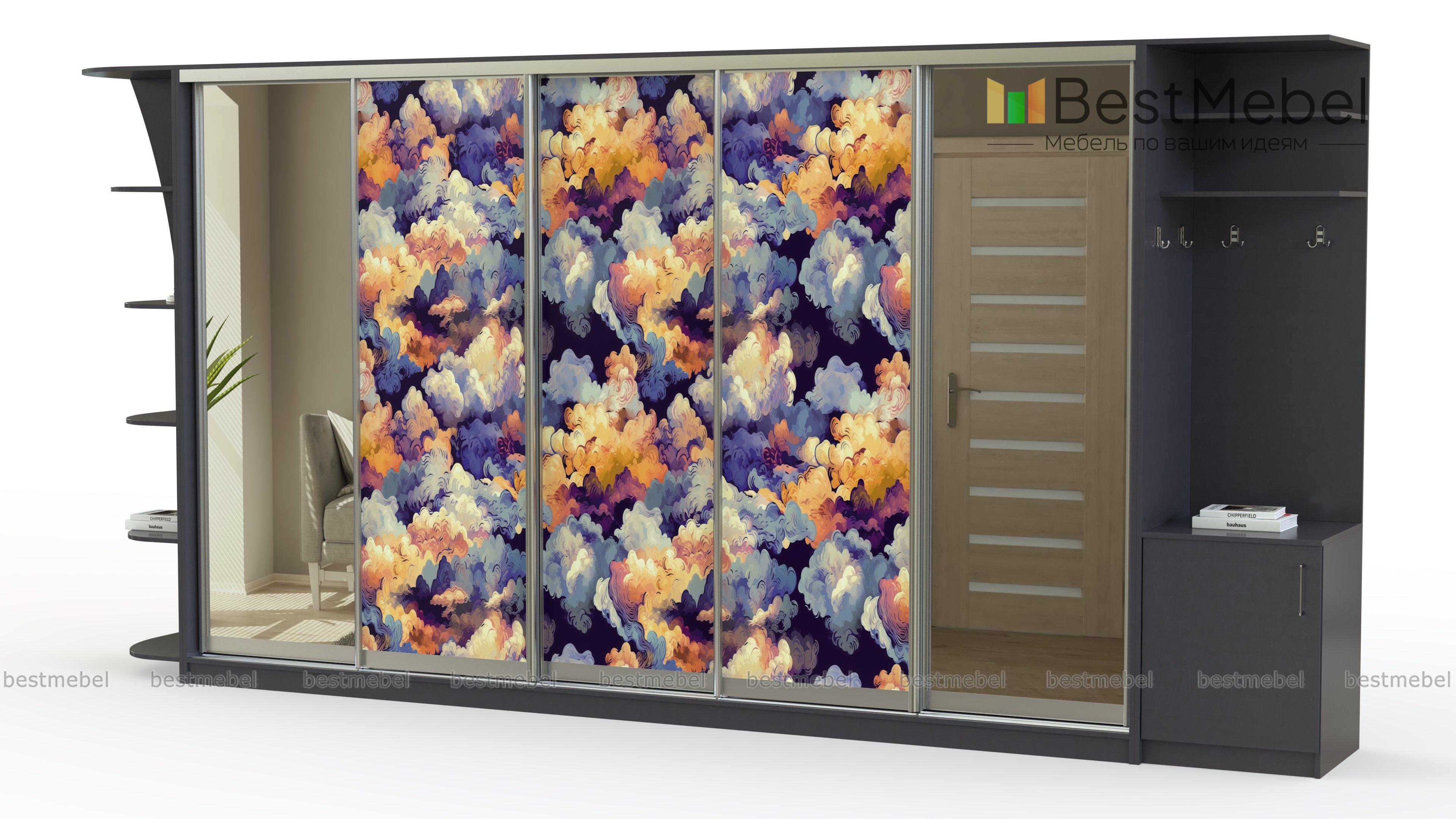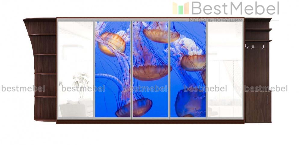 Шкаф-купе Медуза 6 BMS объединен с фигурно вырезанным стеллажом и многофункциональным модулем, оснащенным крючками, двумя верхними полками и тумбой. Комбинированная конструкция поможет вам обустроить входную зону и компактно разместить семейный гардероб и текстиль для дома. В оформлении фасада шкафа зеркальные полотна сочетаются с цветной фотопечатью. Купить шкаф-купе Медуза 6 BMS вы сможете в нашем интернет-магазине с выбором размеров, цвета и компоновки.