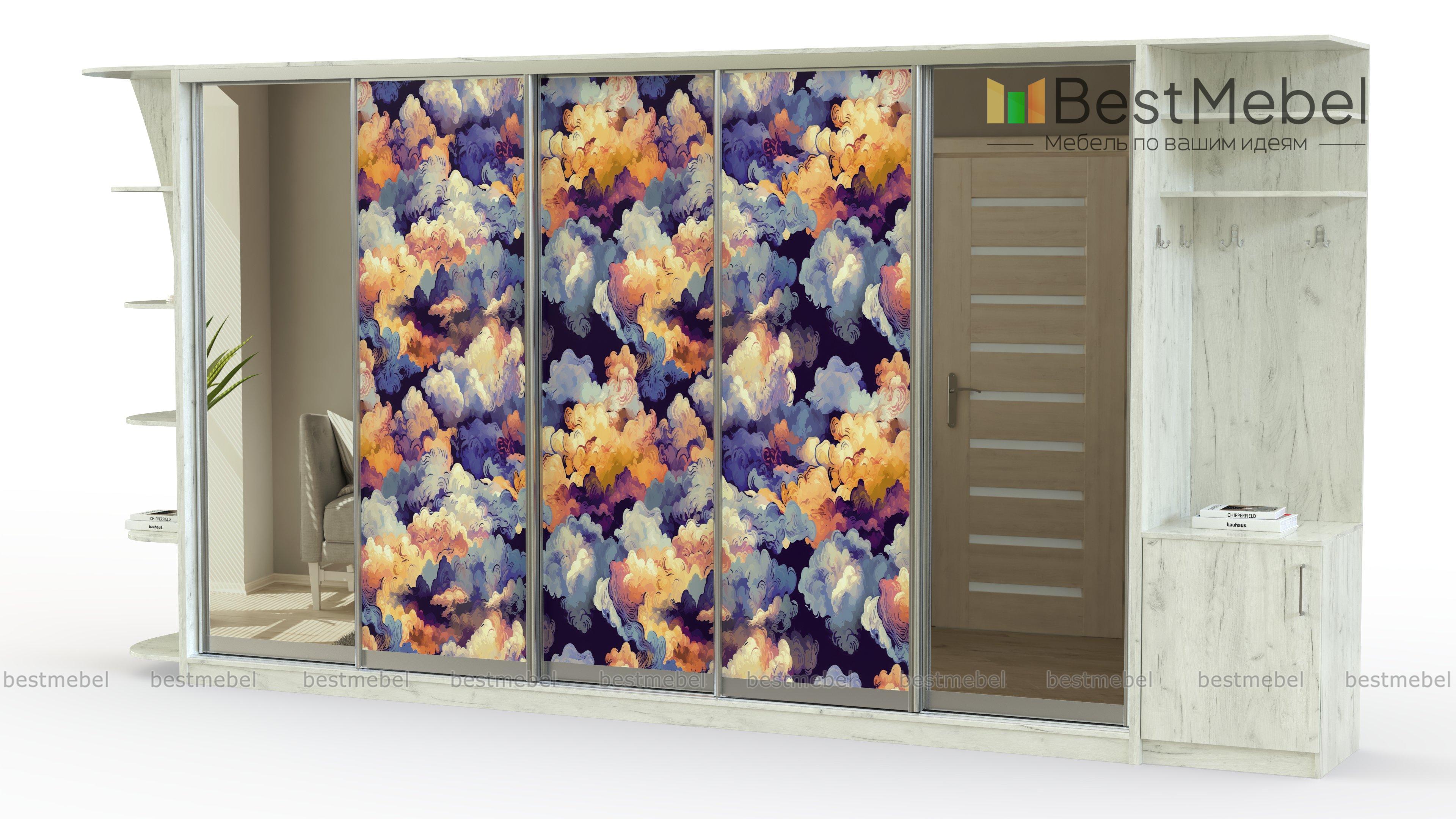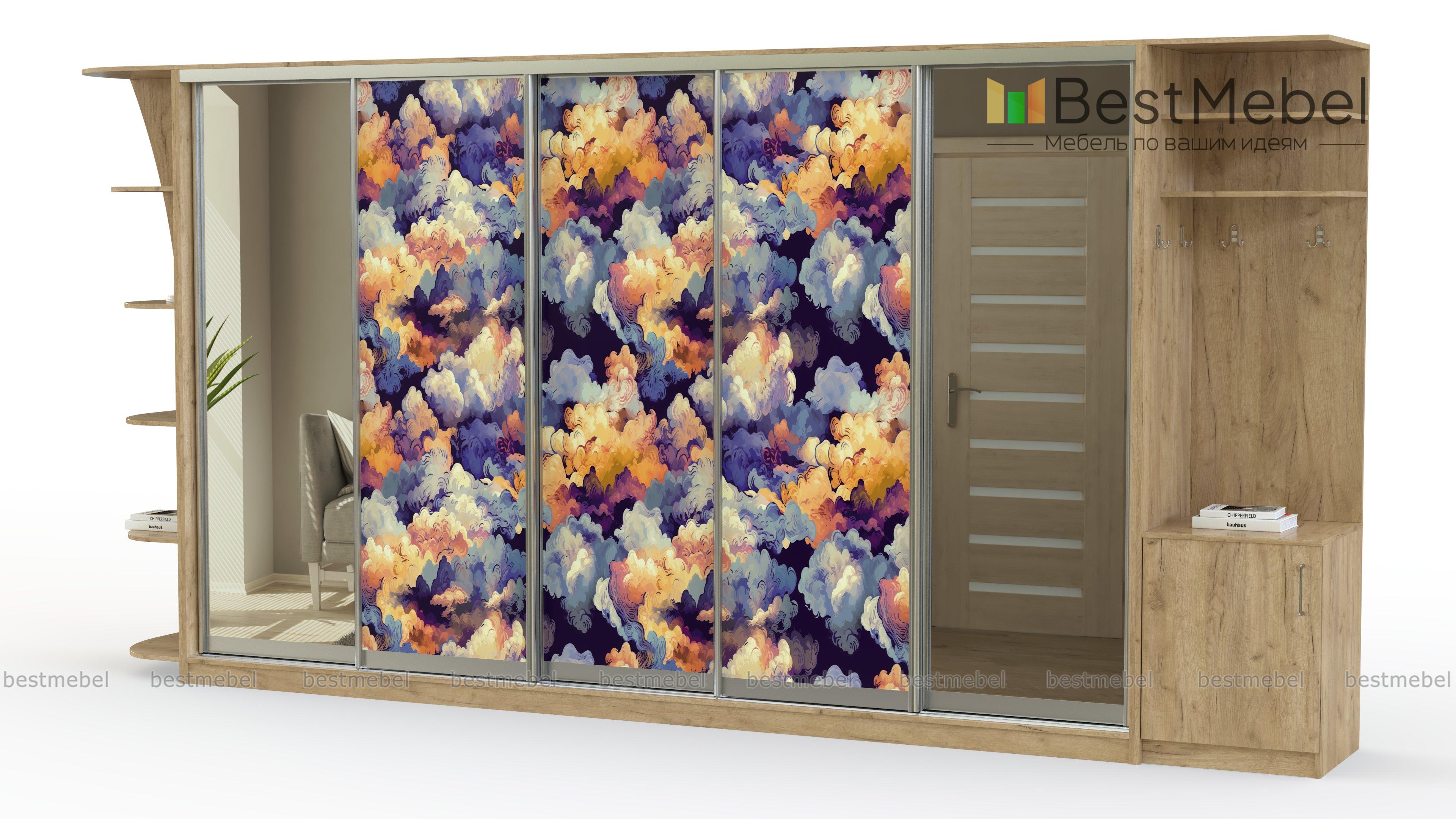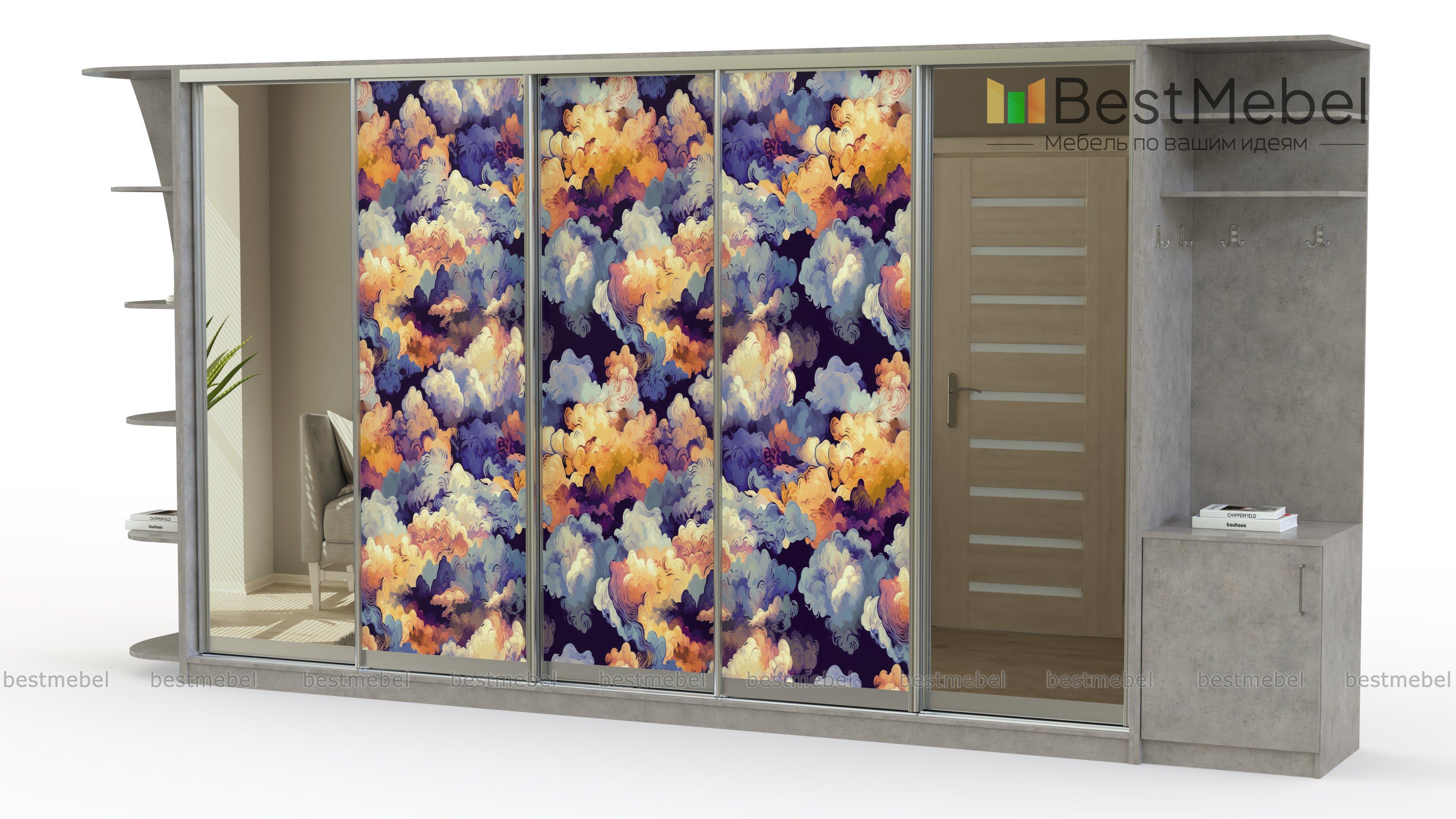 Шкаф-купе Медуза 6 BMS объединен с фигурно вырезанным стеллажом и многофункциональным модулем, оснащенным крючками, двумя верхними полками и тумбой. Комбинированная конструкция поможет вам обустроить входную зону и компактно разместить семейный гардероб и текстиль для дома. В оформлении фасада шкафа зеркальные полотна сочетаются с цветной фотопечатью. Купить шкаф-купе Медуза 6 BMS вы сможете в нашем интернет-магазине с выбором размеров, цвета и компоновки.