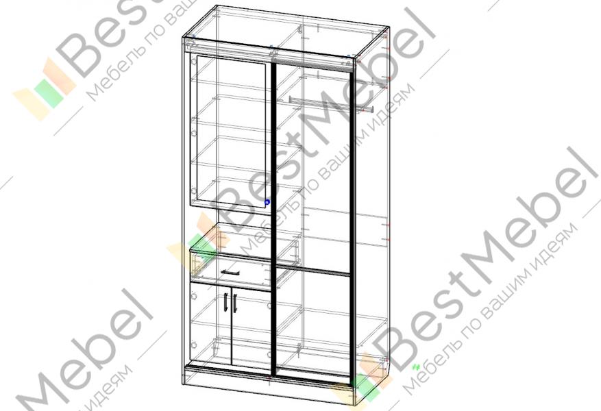 Шкаф-купе МТ 1.4.2 BMS – это высокая функциональность, элегантный дизайн и практичная конструкция, которая позволит сэкономить полезную площадь. Модель оборудована отделением с раздвижной дверцей и секцией с зеркальным шкафчиком, нишей и распашной тумбой с выдвижным ящиком. Вариант декора для вставок на фасадах вы сможете подобрать самостоятельно и гармонично вписать шкаф в интерьер. Купить шкаф-купе МТ 1.4.2 BMS, подобрав необходимые параметры, вы сможете в нашем интернет-магазине.
