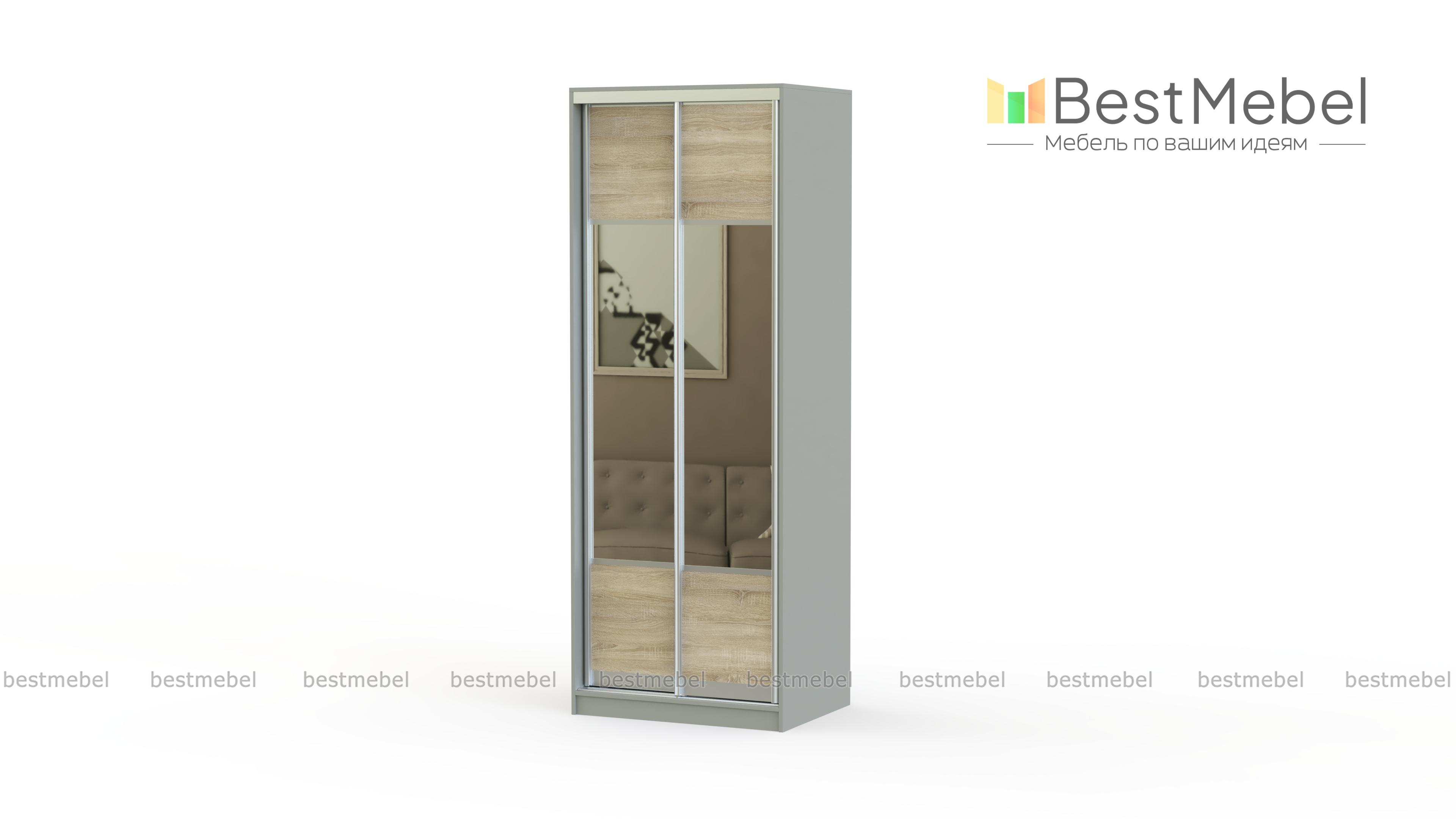 Шкаф-купе Премиум 19 BMS – элегантная конструкция с зеркальными вставками и отделкой под дерево. Она поможет Вам грамотно и максимально полезно использовать свободное пространство, а также эффектно украсить интерьер. Интересно то, что мебель занимает минимум места, но позволяет пользоваться внутренним наполнением по максимуму. Возможность изменить цвет изделия и отсутствие на фасадах ручек позволяют максимально гармонично вписать модель в интерьер комнаты. Купить шкаф-купе Премиум 19 BMS можно на нашем сайте.