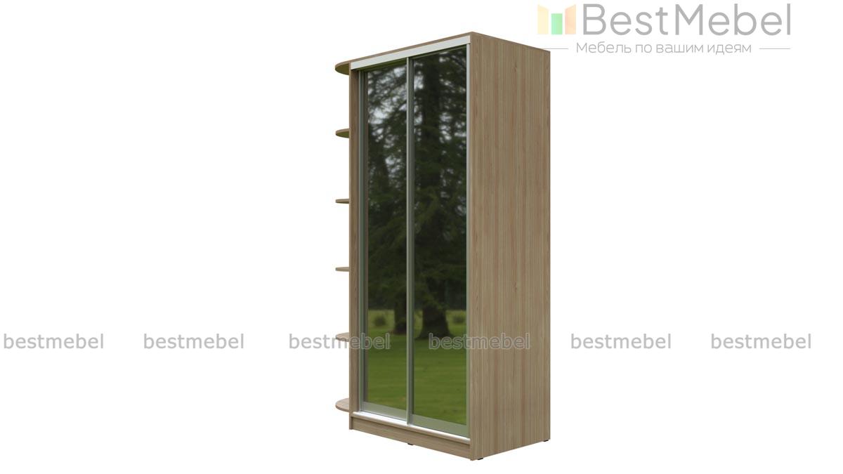 Шкаф-купе Рамир-Стиль 15.1 BMS станет практичным решением для меблировки небольшой спальни, гостиной или прихожей. Компактная двухдверная модель оборудована раздвижным отделением со штангой и дополнена торцевым стеллажом со скругленными полками, на которых будут выигрышно смотреться предметы декора. Зеркальные фасады позволят визуально расширить пространство и сделать интерьер запоминающимся. Купить шкаф-купе Рамир-Стиль 15.1 BMS, подобрав необходимые параметры, приглашаем к нам в интернет-магазин.