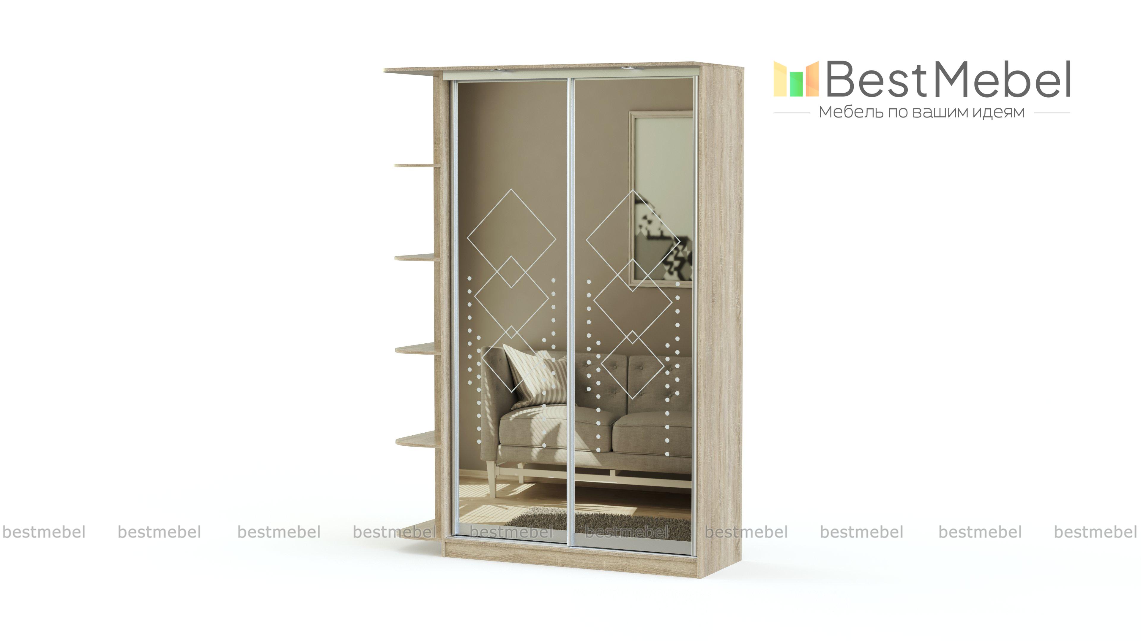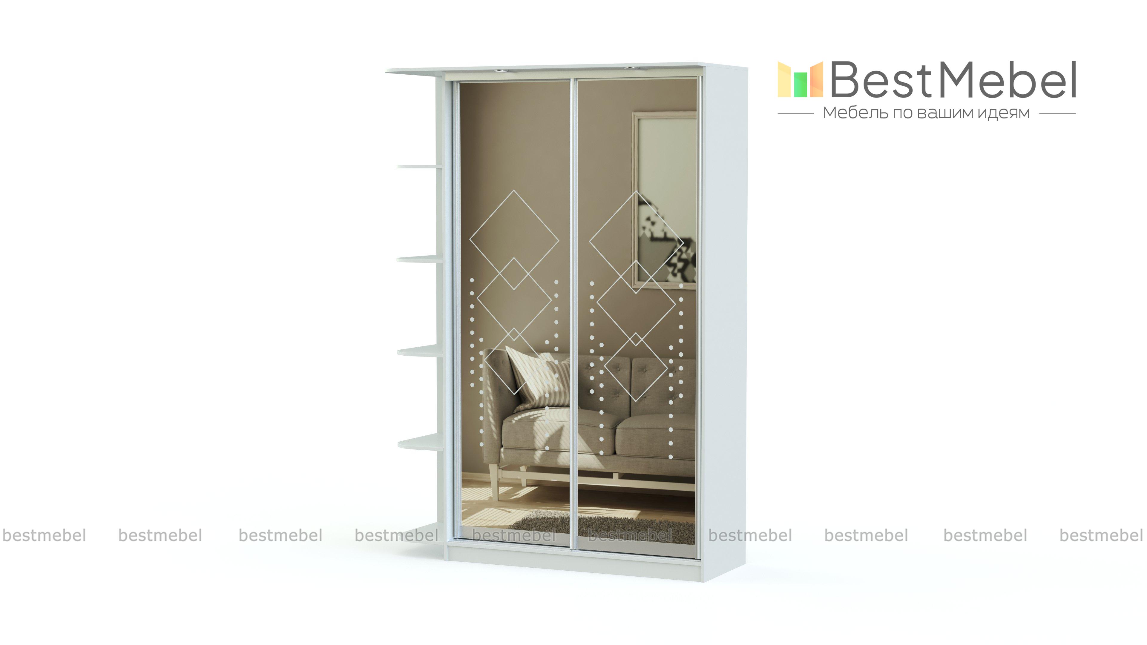 Шкаф-купе Рамир-Стиль-15 BMS станет истинным украшением любого помещения. Шкаф-купе Рамир-Стиль-15 имеет стильный и изысканный дизайн. Отлично выполнены двери-купе с зеркальной поверхностью и оригинальным нежным рисунком. Шкаф достаточно вместительный и имеет все необходимое для комфортного использования по прямому назначению. Угловой элемент с полками предназначен для различных декоративных украшений. Купить шкаф-купе Рамир-Стиль-15 BMS можно для спальни, гостиной или большой прихожей.
