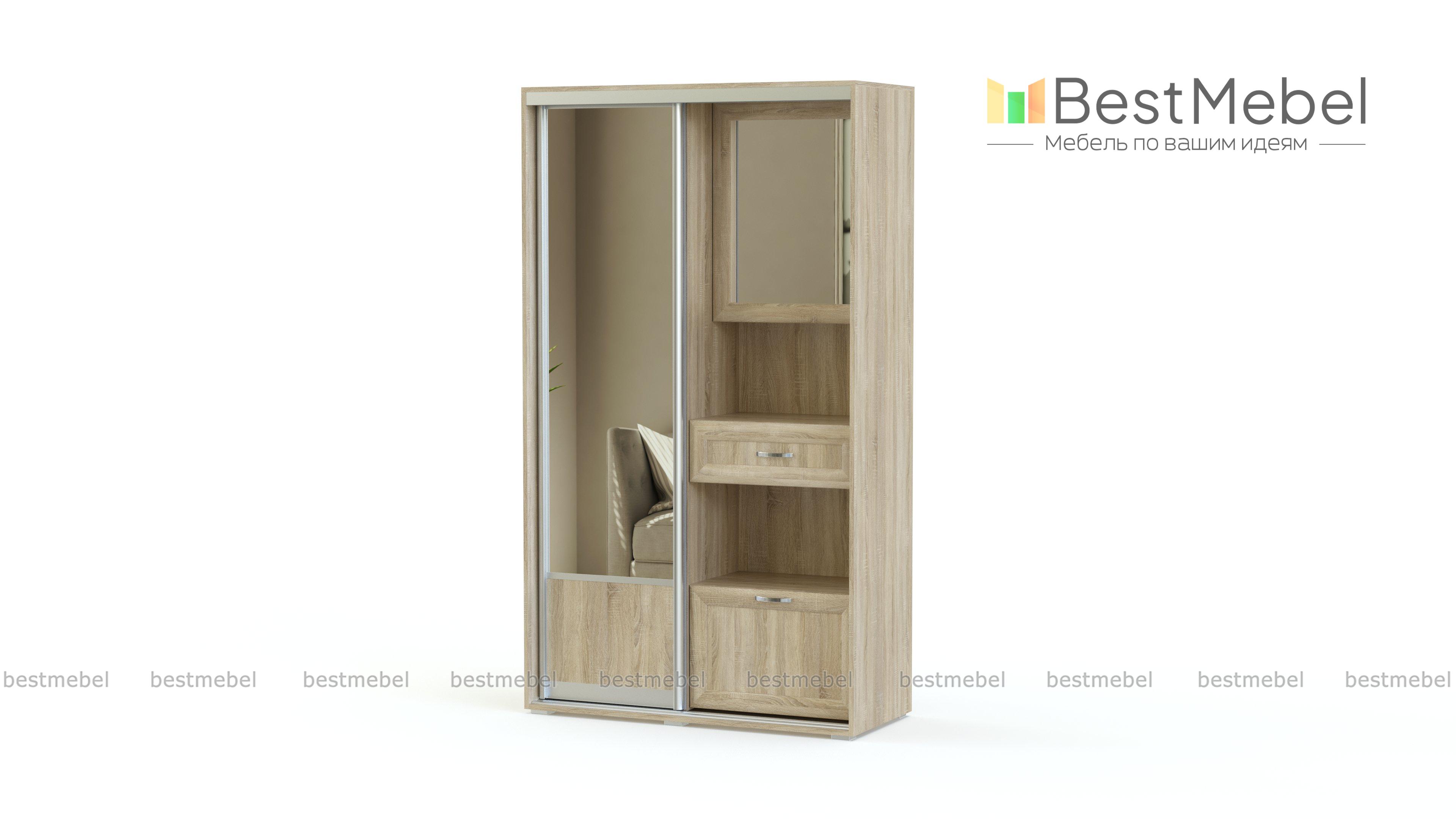 Шкаф-купе ШК-01 Вече BMS отличается компактными размерами, вместительностью и станет выгодным приобретением для малогабаритных прихожих. Однодверная модель оборудована отделением со штангой и открытой секцией с зеркальным шкафчиком, выдвижным ящиком для мелочей и обувницей с откидной дверцей. Зеркало в полный рост на фасаде зрительно увеличит помещение, а из широкой гаммы древесных оттенков вы легко подберете подходящий вариант. Купить шкаф-купе ШК-01 Вече BMS недорого вы всегда можете в нашем интернет-магазине.
