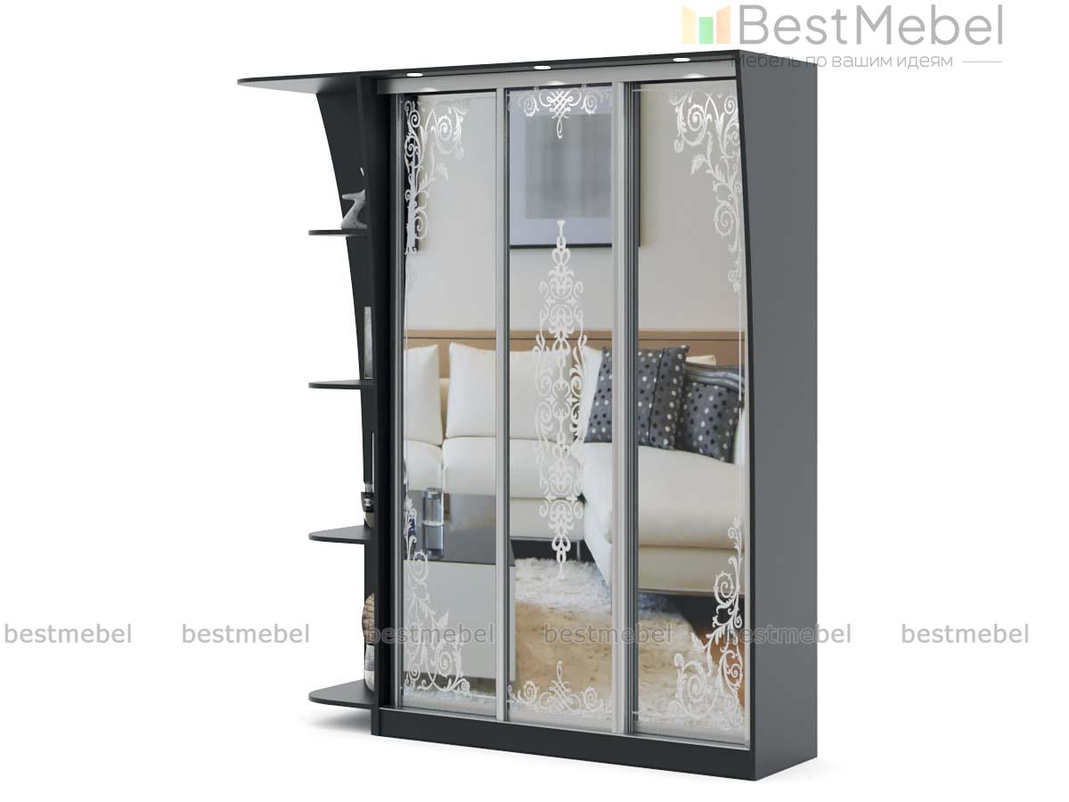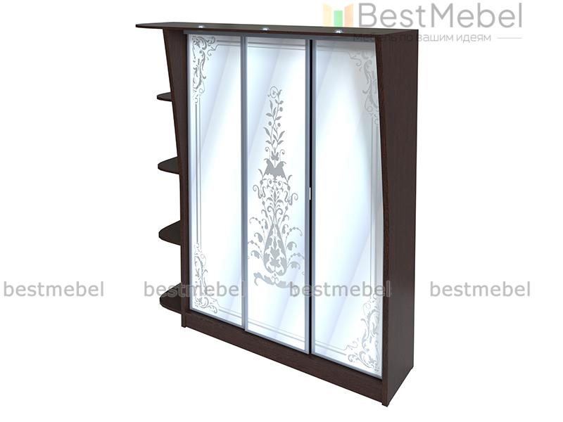 Шкаф купе Стиль 3-15 BMS с плавно сужающимися книзу боковинами отличается эффектным силуэтом, а особенную выразительность дизайну придает зеркальный фасад с нежным ажурным узором. Для удобного хранения уходовых средств и размещения декора трехдверная модель дополнена скругленными торцевыми полками. В козырек встроены светильники, с которыми пользование будет удобным независимо от внешнего освещения. Купить шкаф купе Стиль 3-15 BMS приглашаем в наш интернет-магазин с выбором цвета по каталогу.