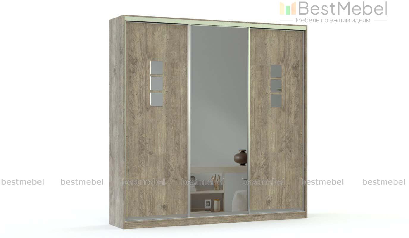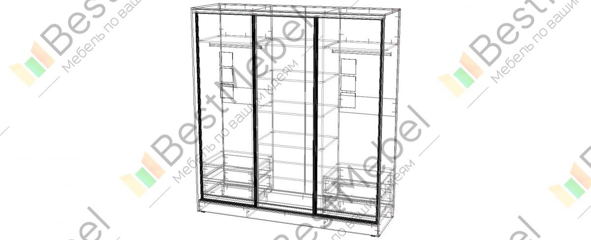 Шкаф-купе Техно 6 BMS – это вместительная трехдверная модель с геометричным декором фасада. Оборудованный платяным отделением и бельевыми полками, шкаф незаменим в интерьере спальни или прихожей для удобного хранения одежды и домашнего текстиля. Модель практичной раздвижной конструкции выполнена из ЛДСП светлых древесных тонов с декоративными вставками и одной полностью зеркальной створкой. Купить шкаф-купе Техно 6 BMS с выбором цвета и размеров вы сможете в нашем интернет-магазине.