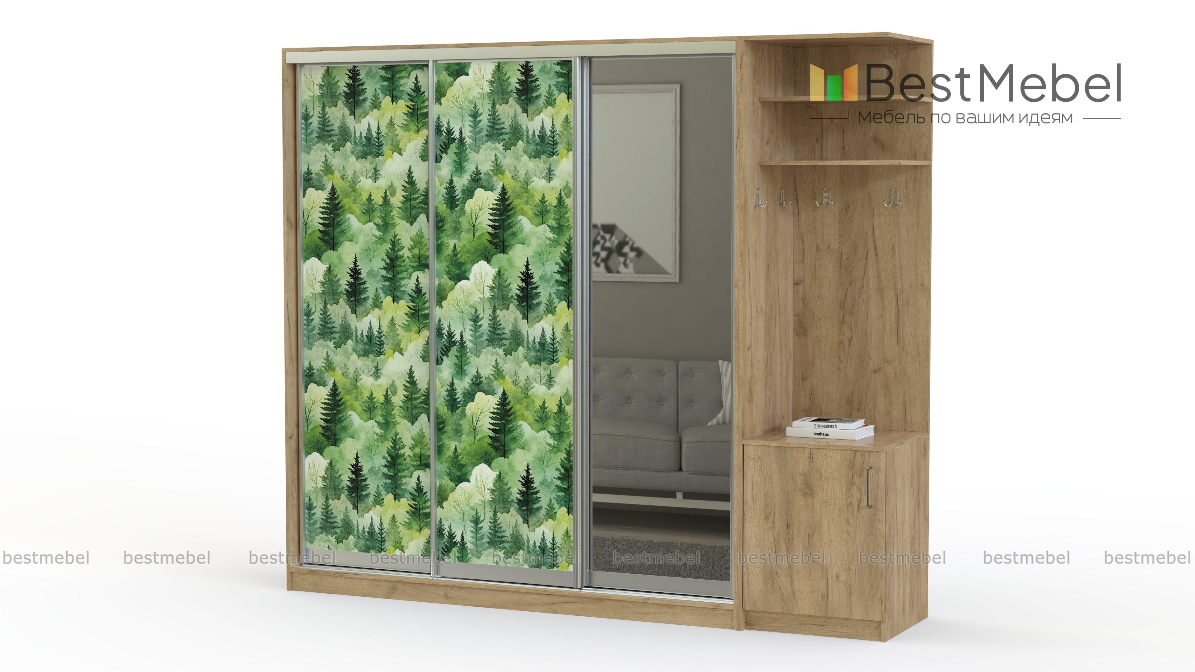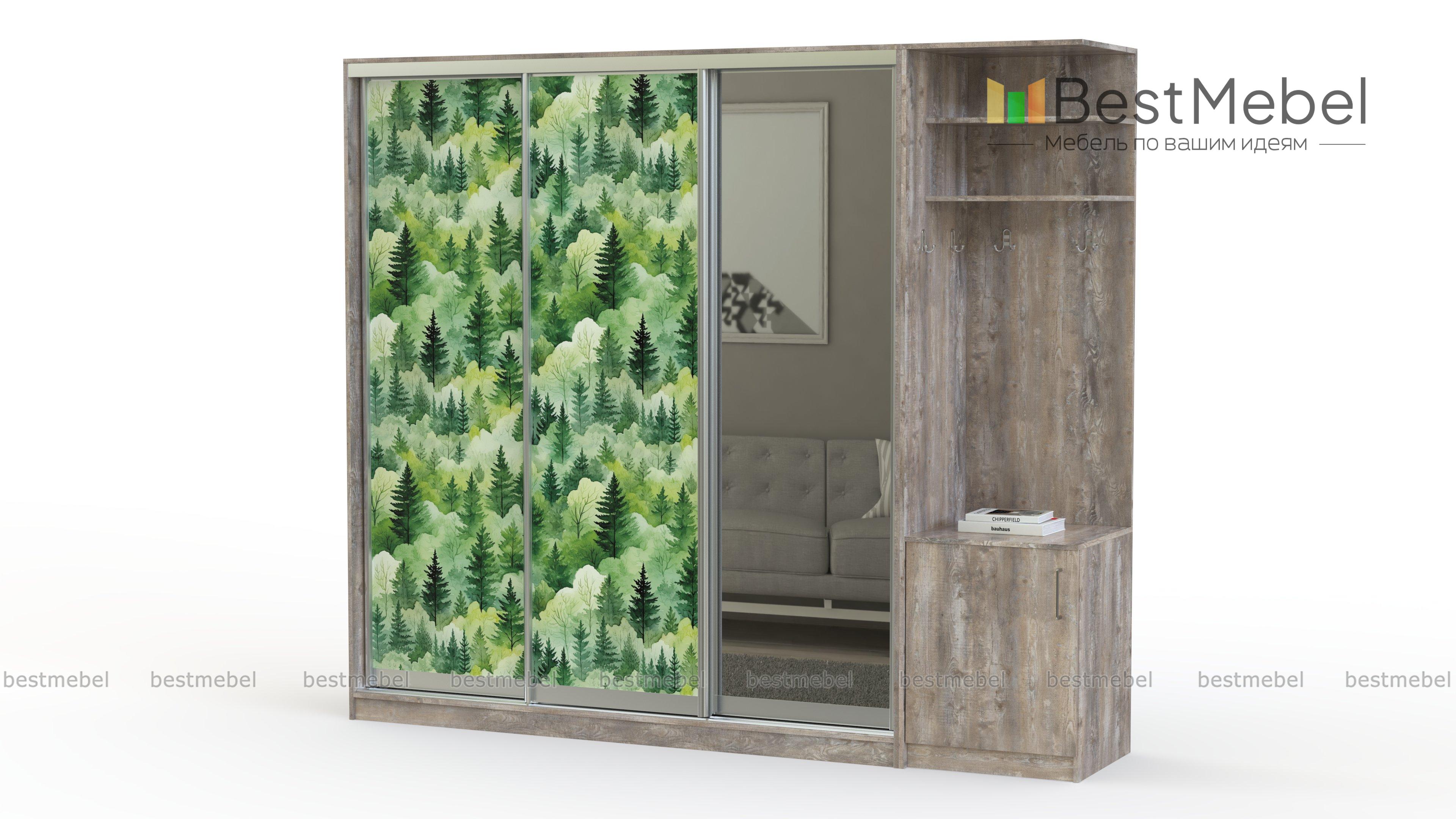 Шкаф-купе Зима 7 BMS удобен для меблировки входной зоны, позволяя разместить повседневную одежду, обувь и аксессуары. Корпус шкафа выполнен в практичном темном оттенке, а природный принт на фасаде привнесет в интерьер атмосферу покоя и расслабленности. Трехдверная модель с зеркалом для примерки одежды скомбинирована с угловой секцией, оснащенной крючками, распашной тумбой и полками. Купить шкаф-купе Зима 7 BMS с выбором цвета и размеров вы сможете в нашем интернет-магазине.