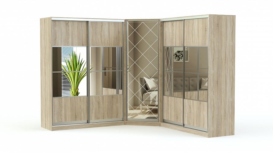 Угловой шкаф-купе пятидверный Лим BMS – это элегантная современная классика для просторных помещений. Шкафная группа из двухдверных прямых отделений-купе и угловой секции позволяет эффективно использовать особенности планировки и отличается вместительностью. Крупногабаритная модель выполнена в древесных тонах и не смотрится громоздко благодаря зеркальным вставкам с изящным пескоструйным рисунком. Надежная система направляющих станет залогом комфортного пользования. Купить Угловой шкаф-купе пятидверный Лим BMS вы сможете в нашем интернет-магазине по отличной цене.