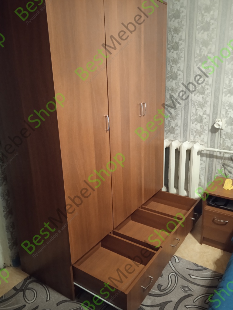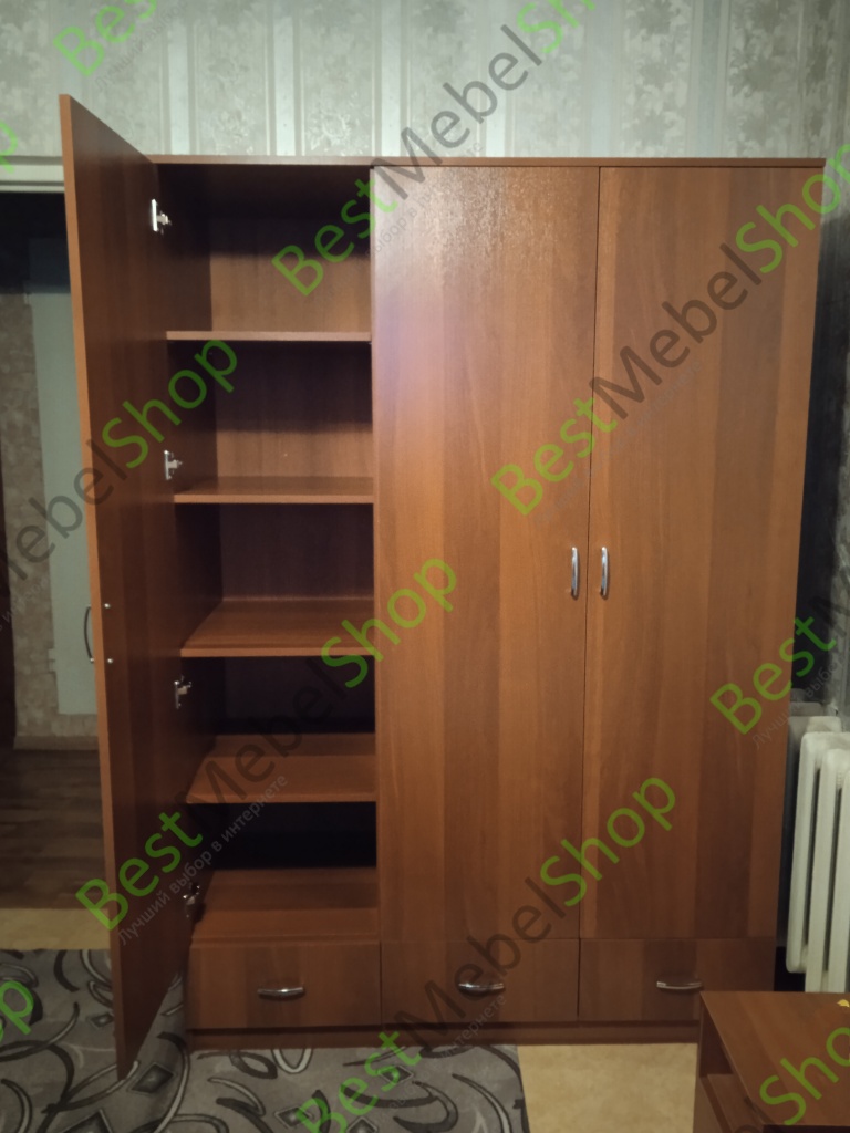 Это уже второй наш заказ на данном сайте. В этот раз заказывали шкаф. Определились с моделью, выбрали нужный цвет, необходимые размеры и оформили заказ. Через несколько минут перезвонил менеджер - уточнил данные, сказал когда будет доставка. За несколько дней до дня доставки позвонил водитель и сказал в какое время будет у нас. Доставка была во время, за что отдельное спасибо. Сам шкаф полностью соответствует фото на сайте, при сборке не возникло больших проблем, собрали довольно быстро. Единственно, за что сняла звезду - задняя стенка в широком отделении была разделена на 2 листа ДВП, вот тут и была основная проблема (сложно было их состыковать по середине, т.к. не было никакой планки, к чему их можно было прибить). Шкаф нам очень понравился, вместительный, удобный. Размеры нашего шкафа: Ш-В-Г - 1350-1965-550. Цена-качество полностью соответствует.