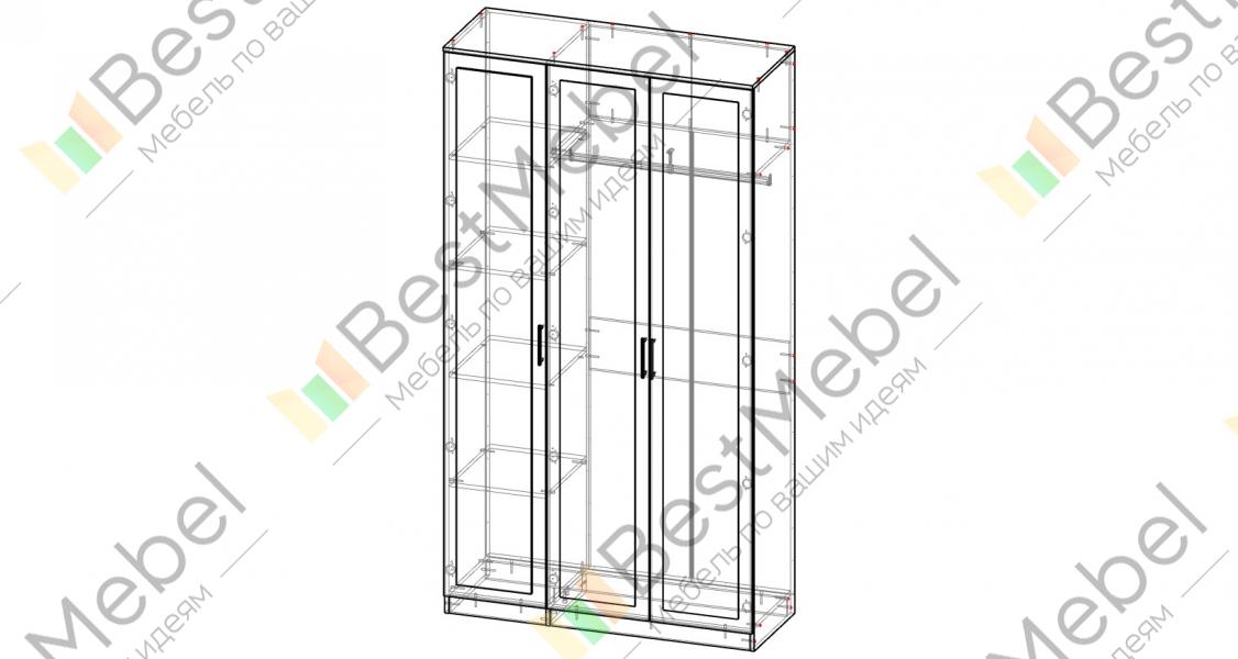 Распашной шкаф Астория 2 BMS дополнит спальный интерьер удобной системой хранения. Трехдверная модель традиционной распашной конструкции оборудована вместительным платяным отделением со штангой и бельевыми полками. Рамочные фасады шкафа выполнены в крафтовых древесных тонах, делая комнату уютнее, а зеркальные створки придадут ей дополнительную глубину и объем. Купить распашной шкаф Астория 2 BMS приглашаем в наш интернет-магазин с учетом необходимых размеров.