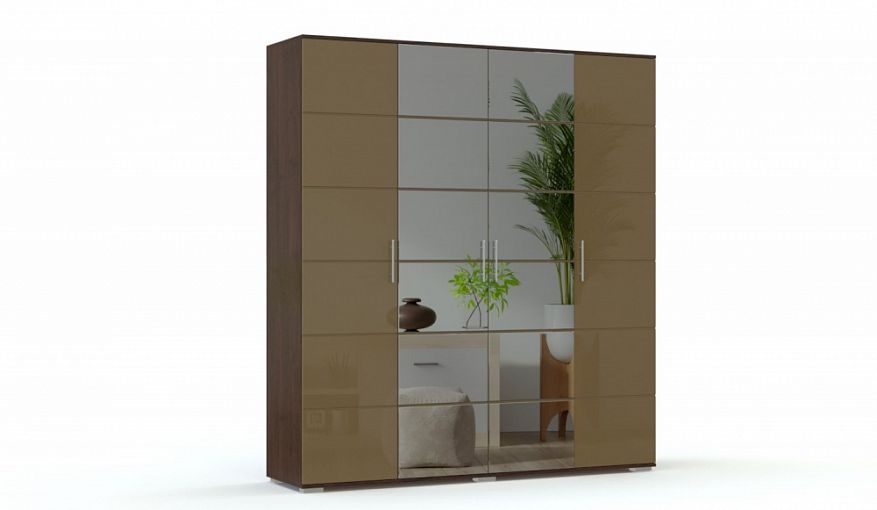 Распашной шкаф Белла 2 BMS не оставит равнодушными поклонников современных геометричных дизайнов. В оформлении четырехдверной модели эффектно сочетаются ЛДСП древесных тонов, глянец и зеркала, визуально расширяя границы комнаты. Оборудованный платяным отделением и бельевыми полками, шкаф отличается вместительностью, а распашные створки обеспечивают содержимому прекрасный обзор. Купить распашной шкаф Белла 2 BMS для меблировки современной спальни или прихожей вы сможете в нашем интернет-магазине.