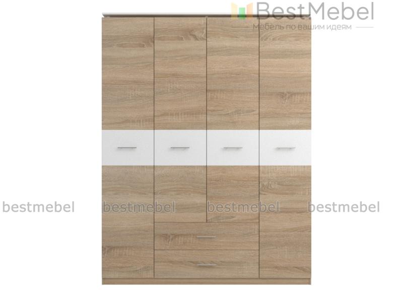 Шкаф 4-х створчатый Импульс 16.06 BMS – практичное решение для меблировки просторной спальни. Оборудованный платяным отделением, полками и выдвижными ящиками, шкаф позволит легко поддерживать в комнате порядок и оптимизировать хранение белья, одежды и аксессуаров. Фасад древесных оттенков, декорированный белыми вставками и оригинальной фурнитурой, гармонично впишется в интерьер современных помещений. Купить шкаф 4-х створчатый Импульс 16.06 BMS вы сможете по лучшей цене в нашем интернет-магазине.